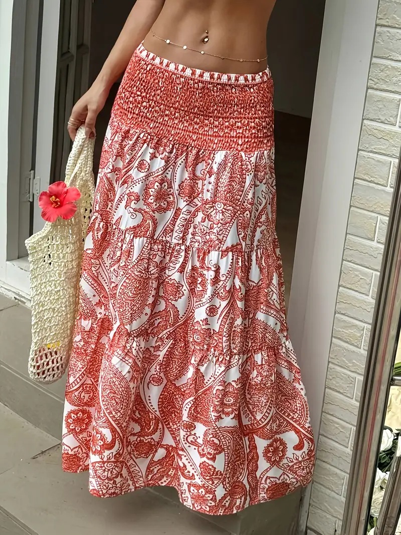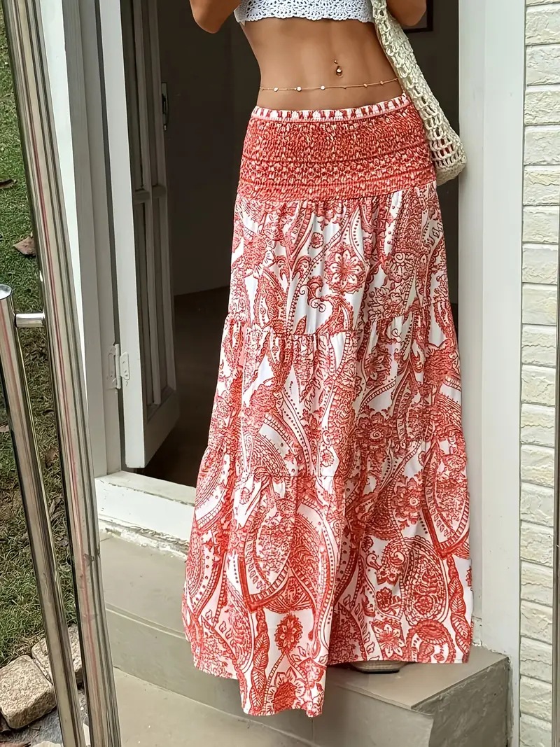 现货跨境欧美亚马逊独立站爆款休闲印花长裙度假半身裙外贸花裙子
