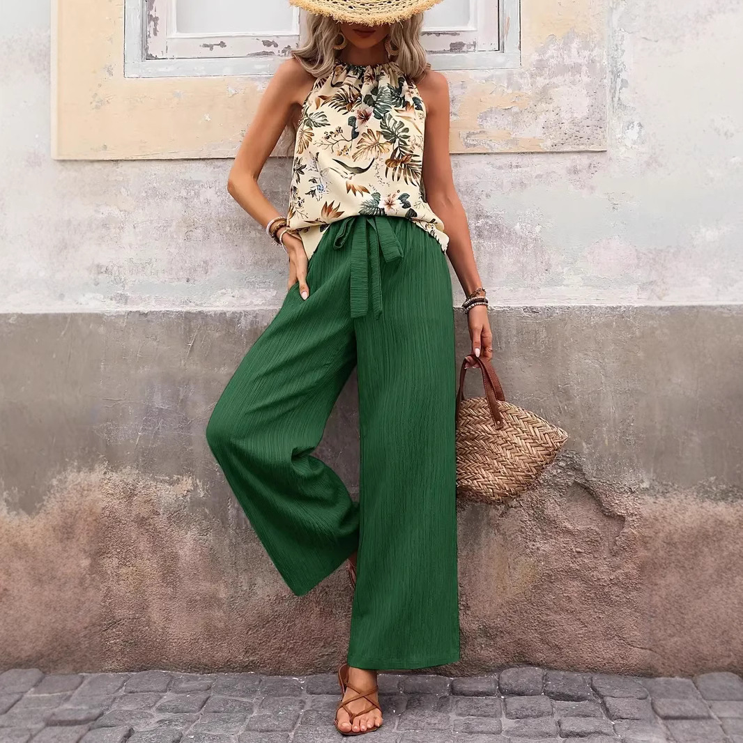 スポット2025欧米ウィッシュ人気独立局クロスボーダーアマゾンノースリーブトップスとパンツ高級2点セット