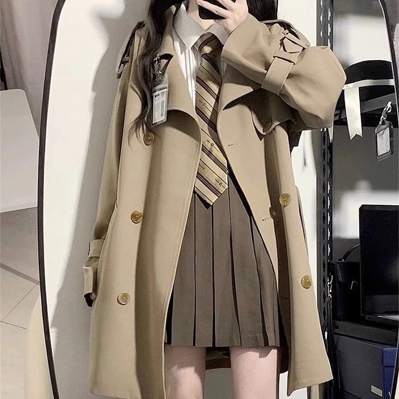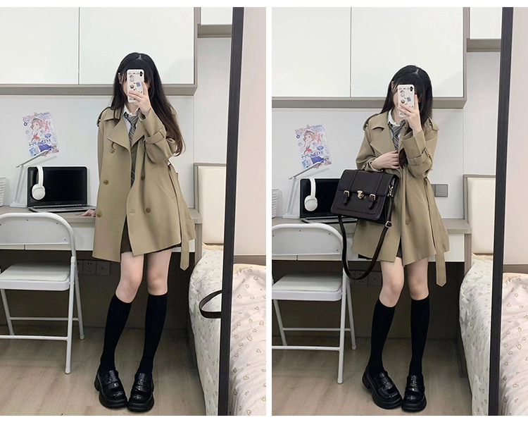 今年流行中长款赫本英伦学院风衣外套女春秋季小个子学生大衣