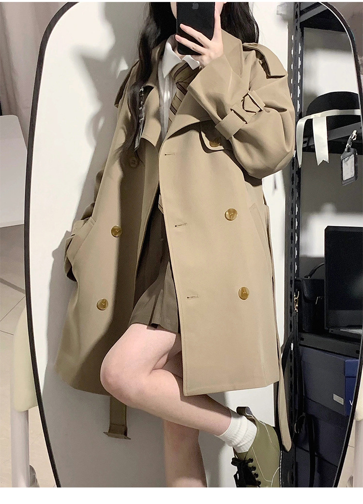 小个子风衣女2025春秋新款韩系感英伦风中长短款加厚大衣外套