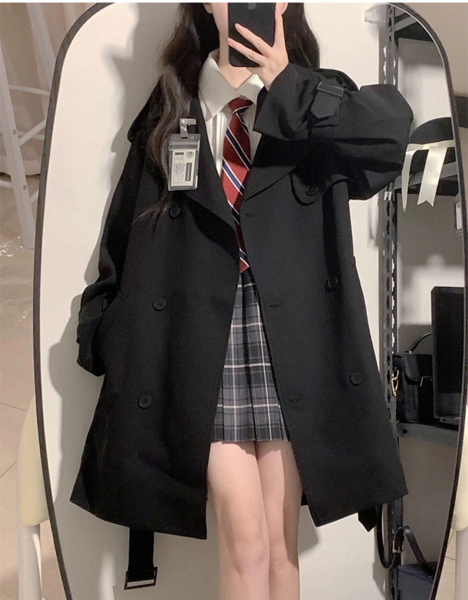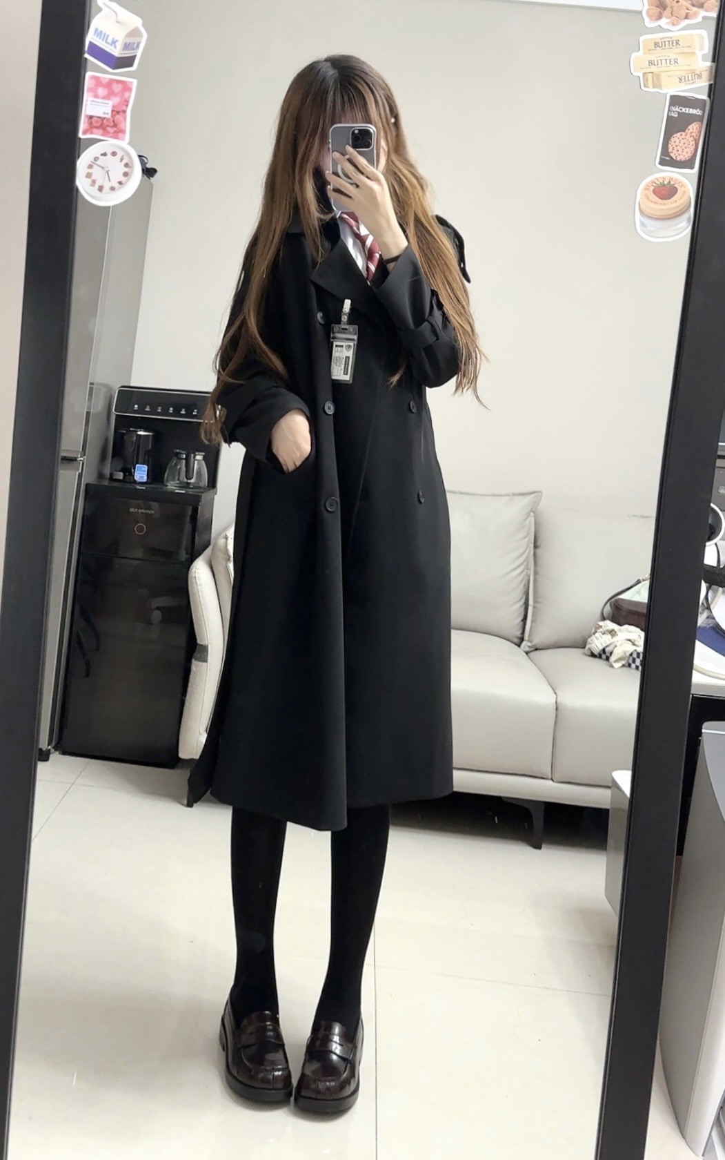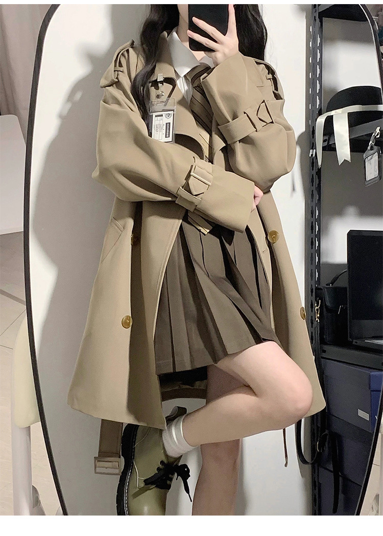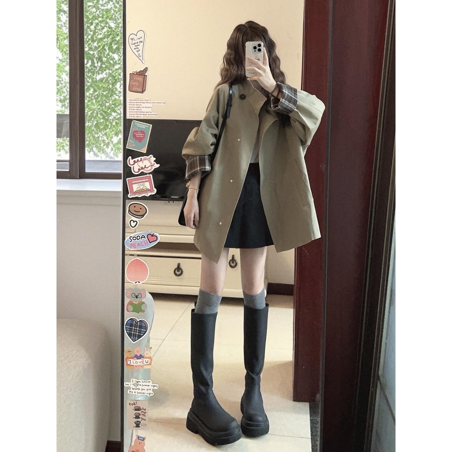 垂感学院风大衣春秋冬季新款大码胖妹妹感英伦休闲风衣外套女