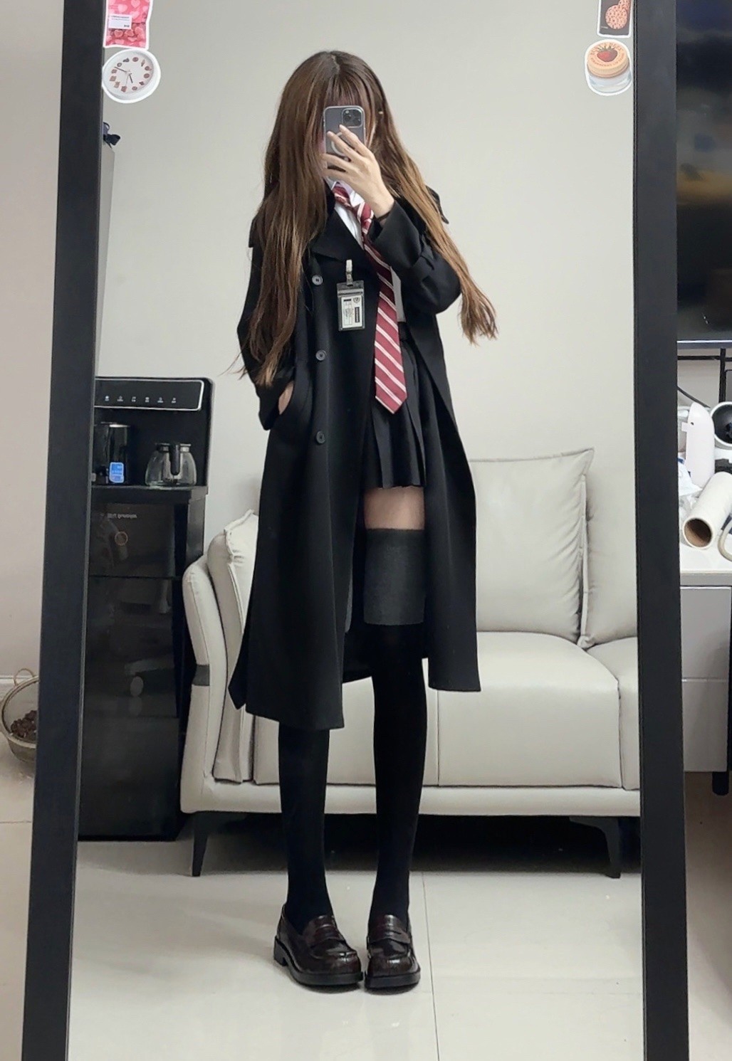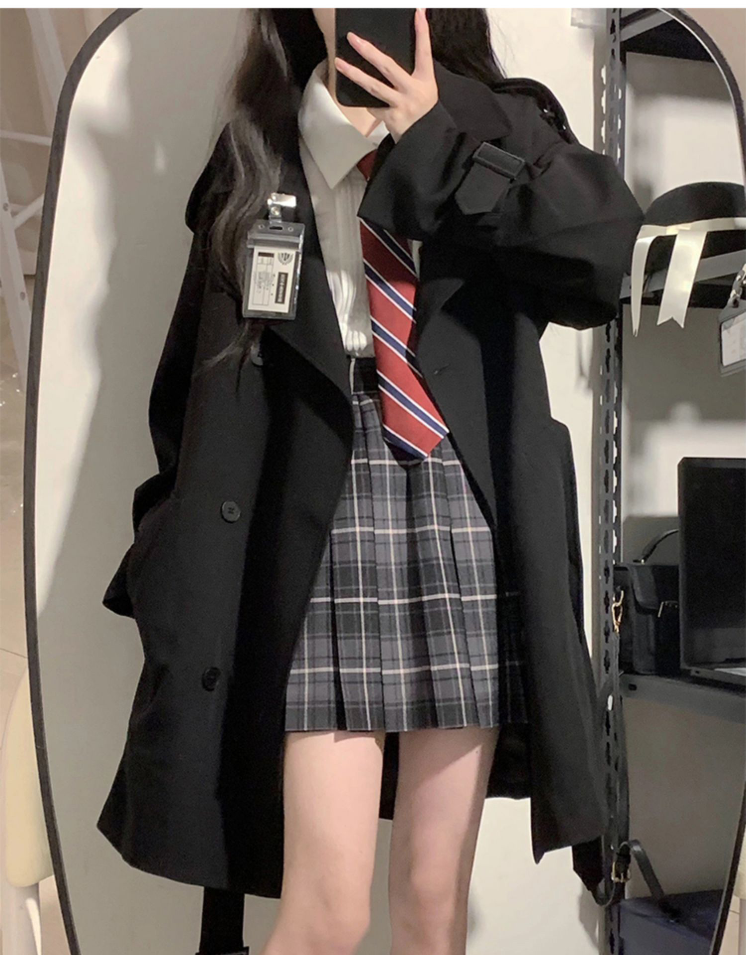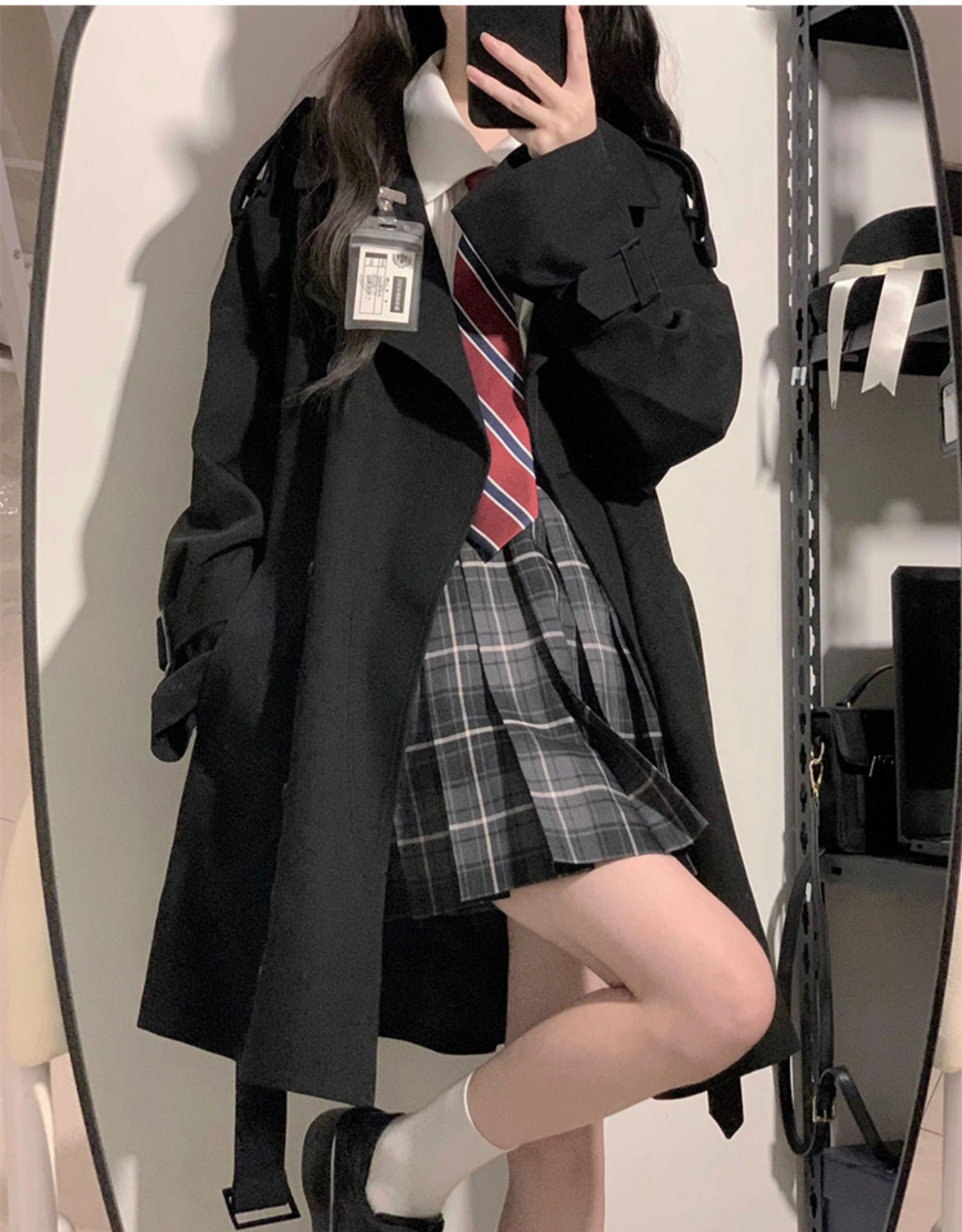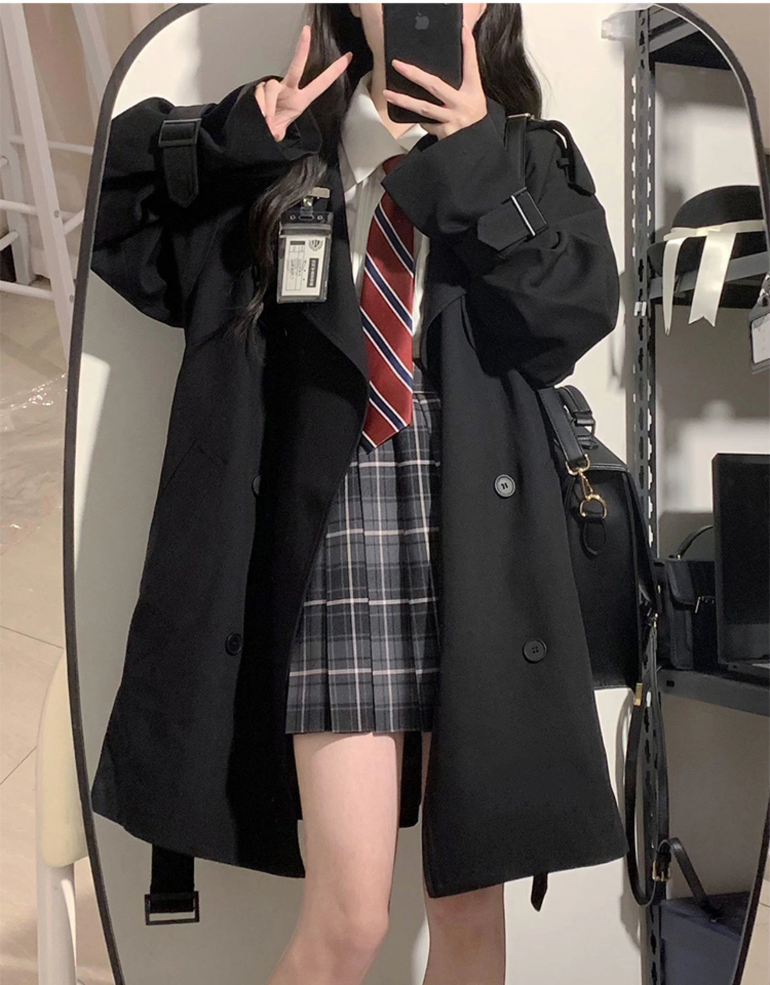 垂感学院风大衣春秋冬季新款大码胖妹妹感英伦休闲风衣外套女