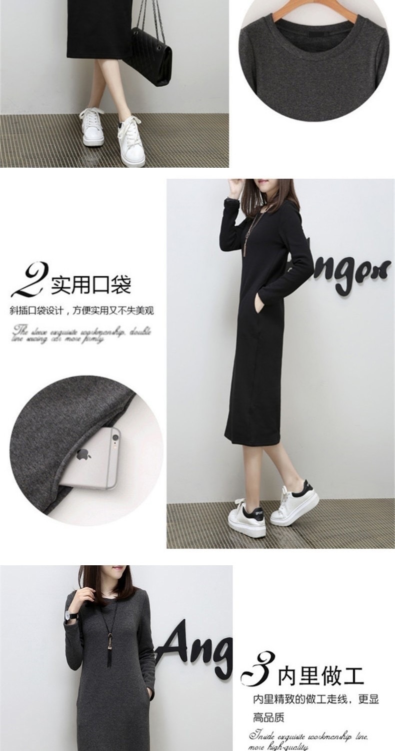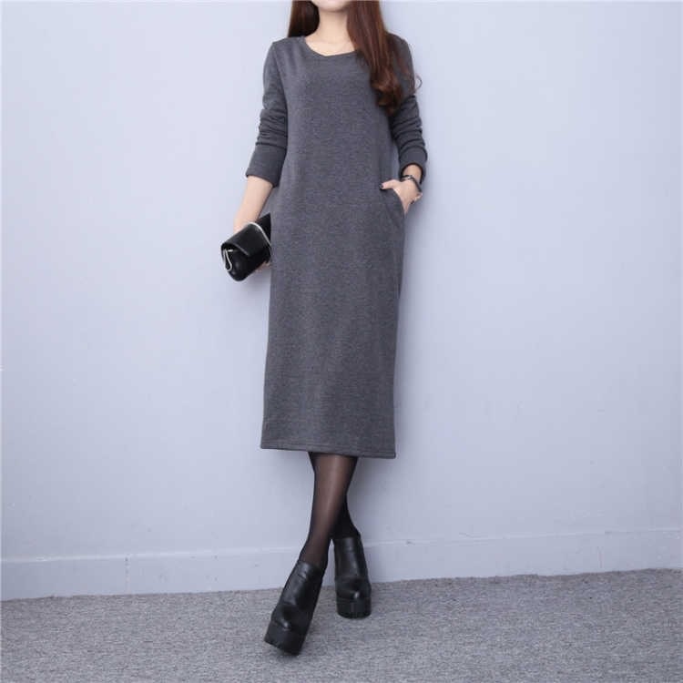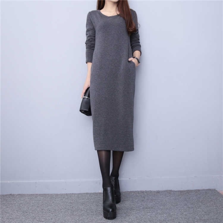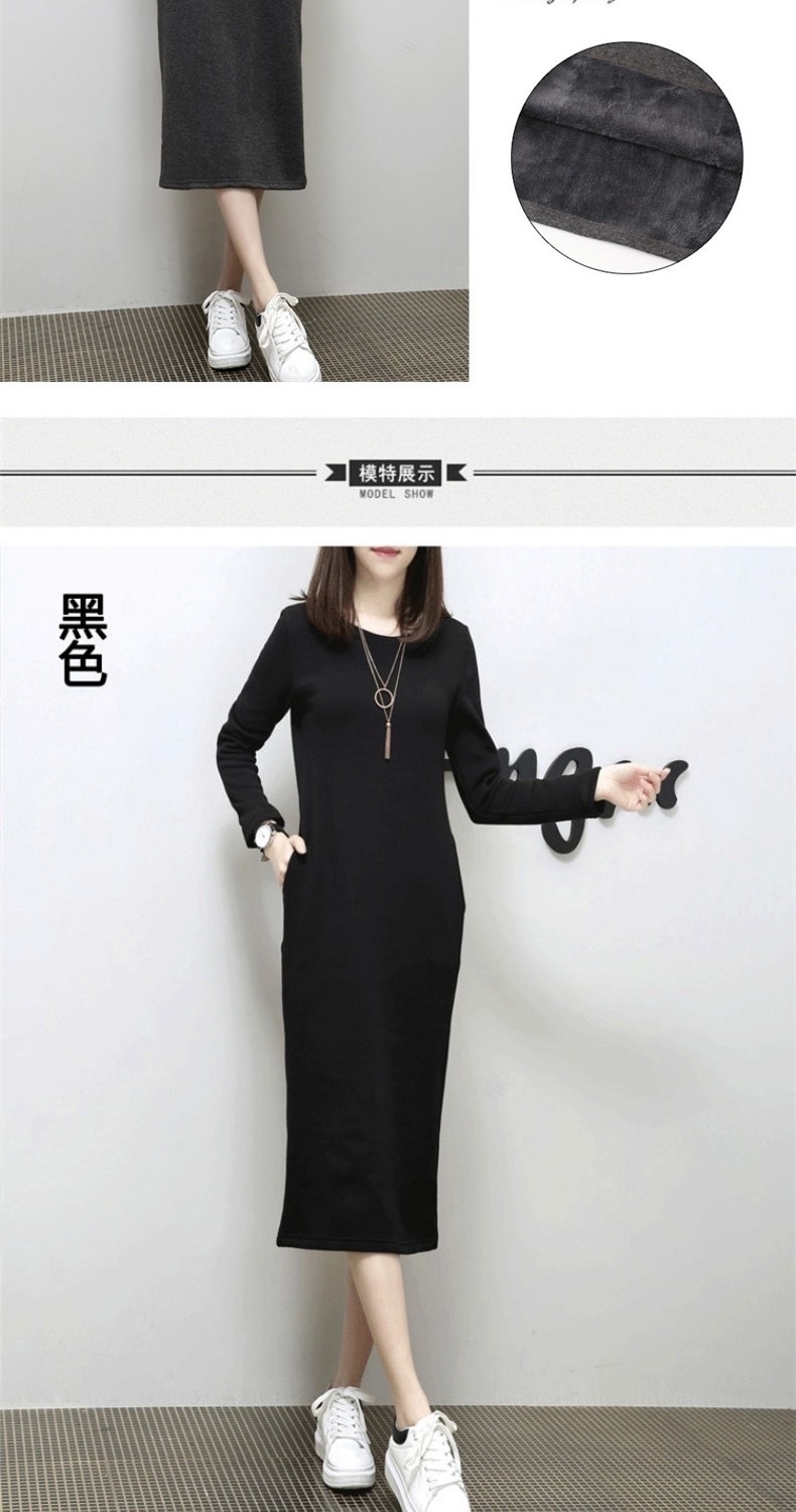 加绒加厚胖mm200斤秋冬新款卫衣女长裙大码女装中长款打底连衣裙