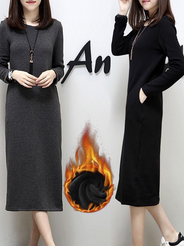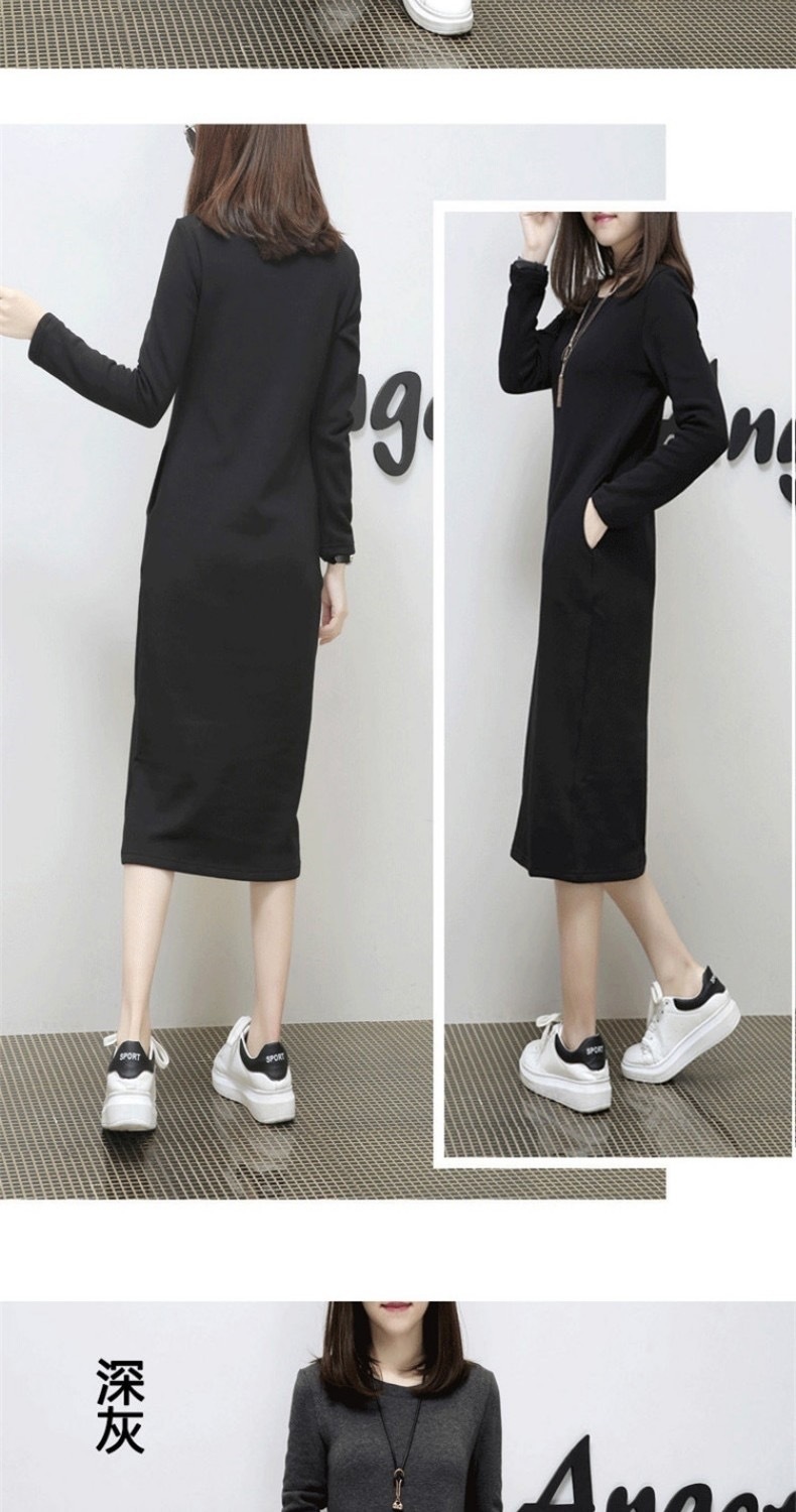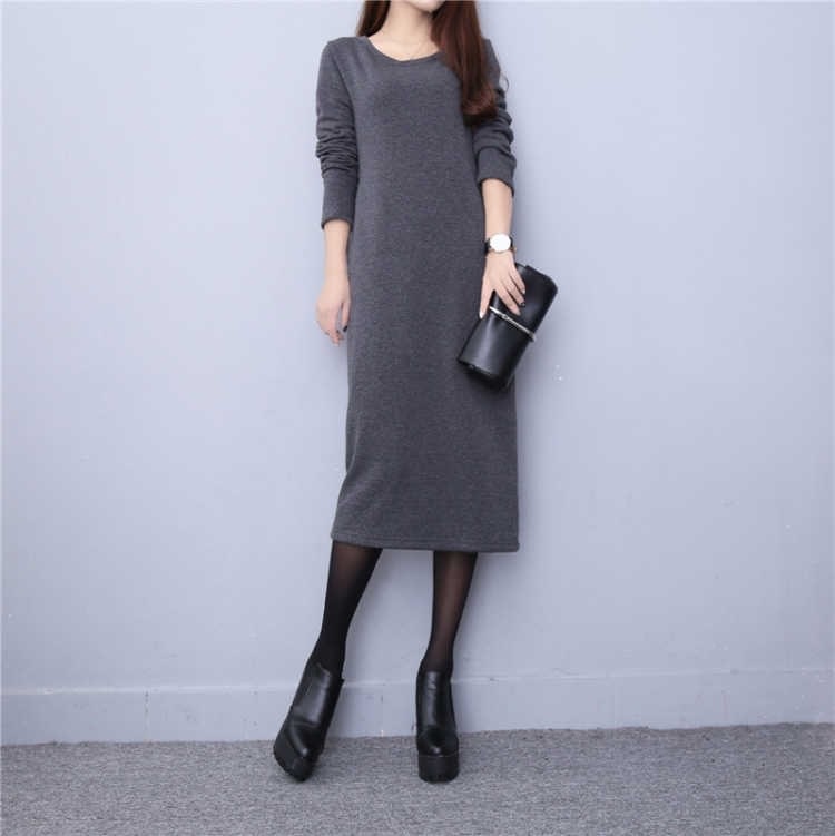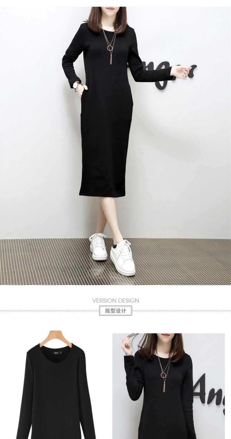 加绒加厚胖mm200斤秋冬新款卫衣女长裙大码女装中长款打底连衣裙