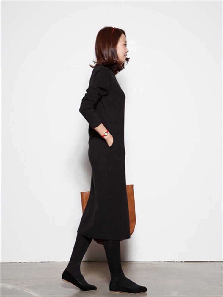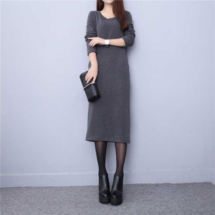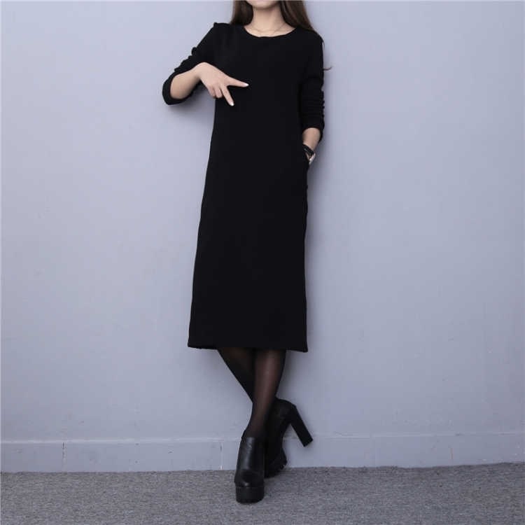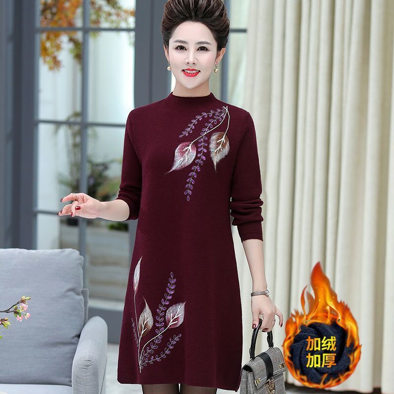 お母さんは秋冬の新型の大きいサイズの太ったMM200斤の中で長いタイプのカシミヤの厚いワンピースの中高年の底のスカートを詰めます。