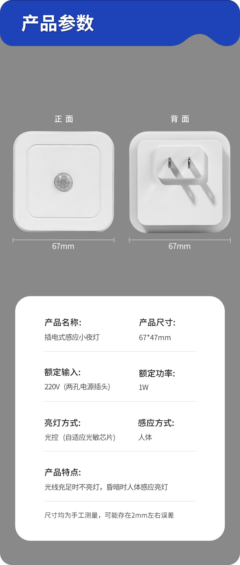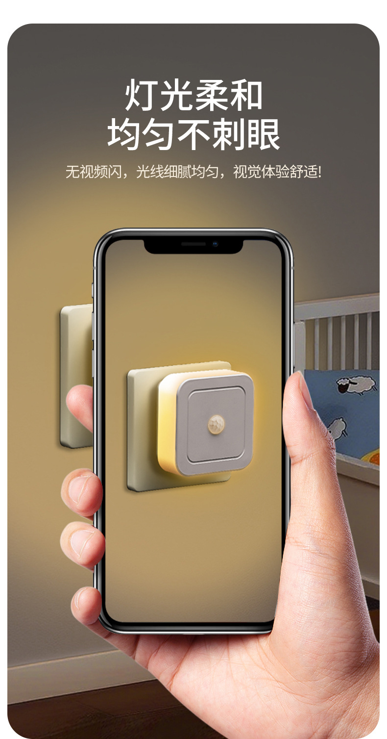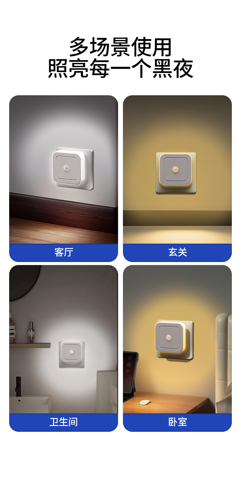 插电感应小夜灯小夜灯节能开关卧室厕所婴儿喂奶LED床头宿舍楼道