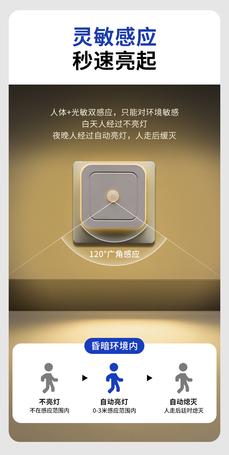 人体感应小夜灯led床头卧室节能灯插电式睡眠护眼婴儿哺乳床头灯