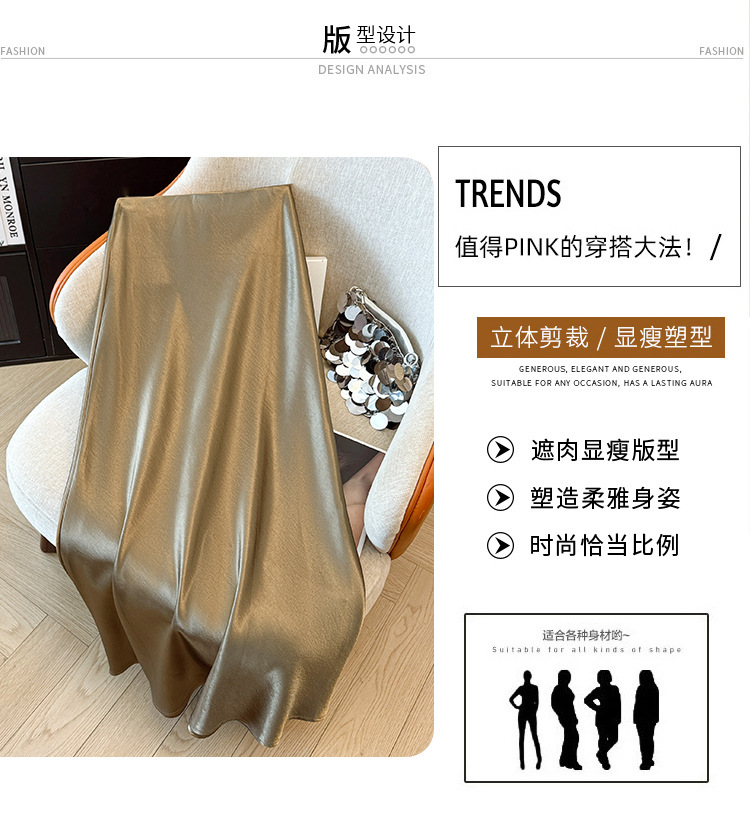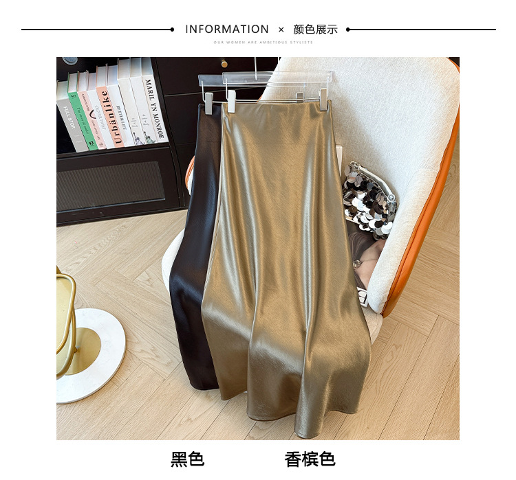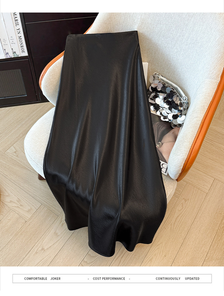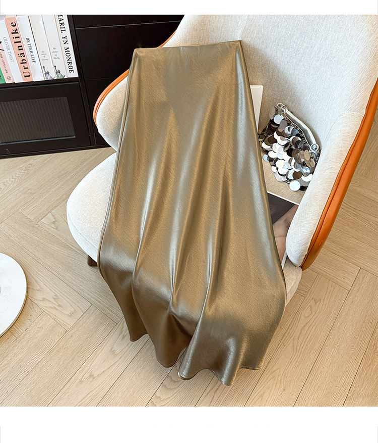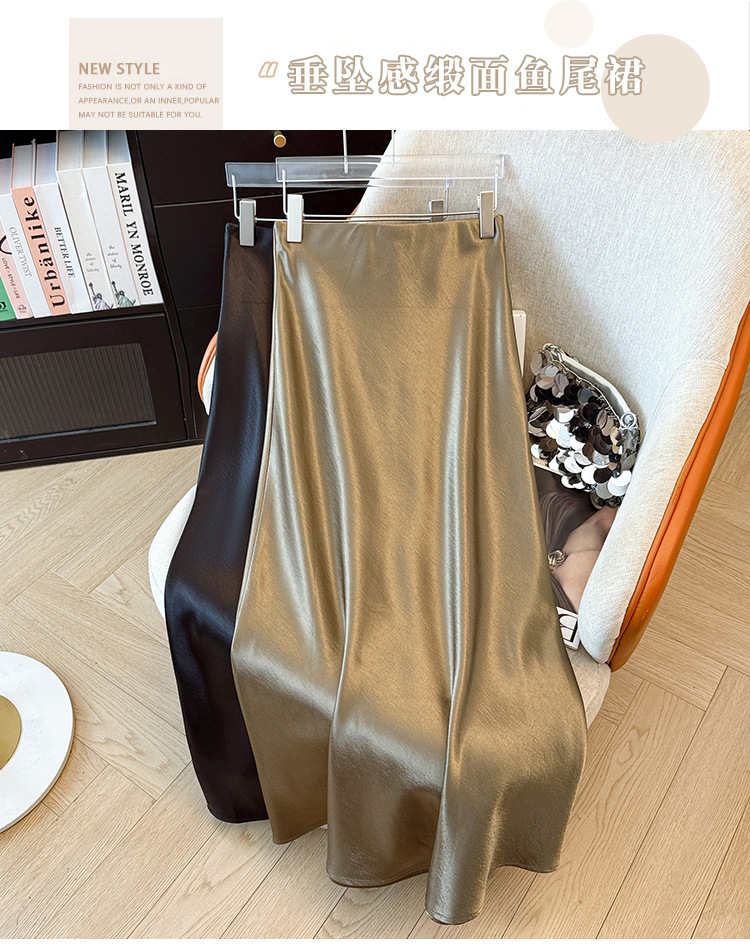 ハイウエストスリムミドル丈サテンアセテートシルキースカート2025新作ヒップカバーフィッシュテールAラインロングスカートA5036