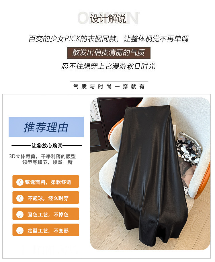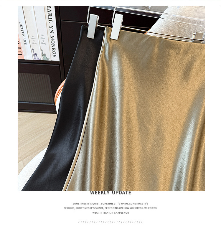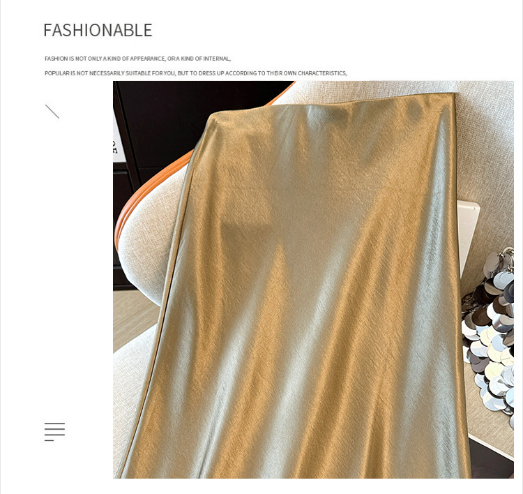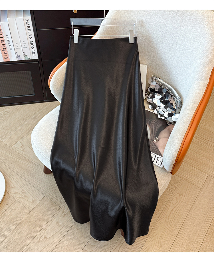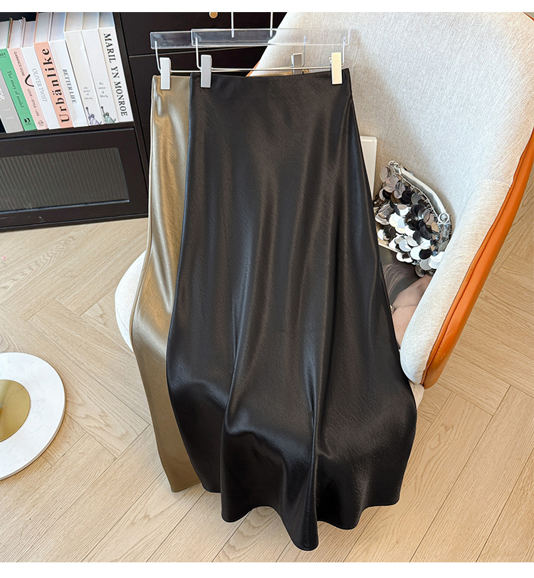 ハイウエストスリムミドル丈サテンアセテートシルキースカート2025新作ヒップカバーフィッシュテールAラインロングスカートA5036
