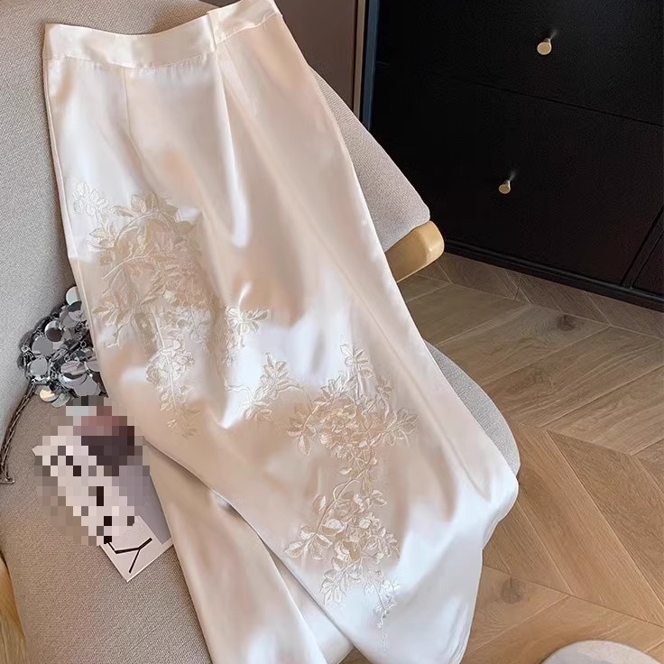 新中式サテンスカート2025夏新作婦人服民族風スカート女性らしい重刺繍スカート