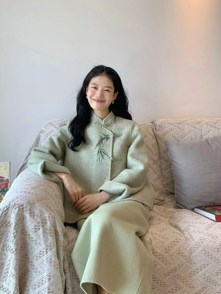 新中式清涼禅意セットアップ レディース 秋冬 国風 留め金付きチャイナドレス 今年流行のツーピーススカート