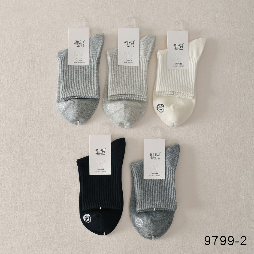維織靴下男女春夏綿の薄い綿綿は汗を吸って通気する白い中筒綿靴下スポーツ靴下9188