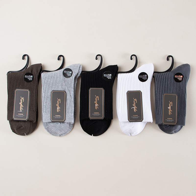 靴下男性秋冬中筒靴下綿靴下双針純色ビジネス靴下カジュアル男性吸汗通気性男性靴下卸売り