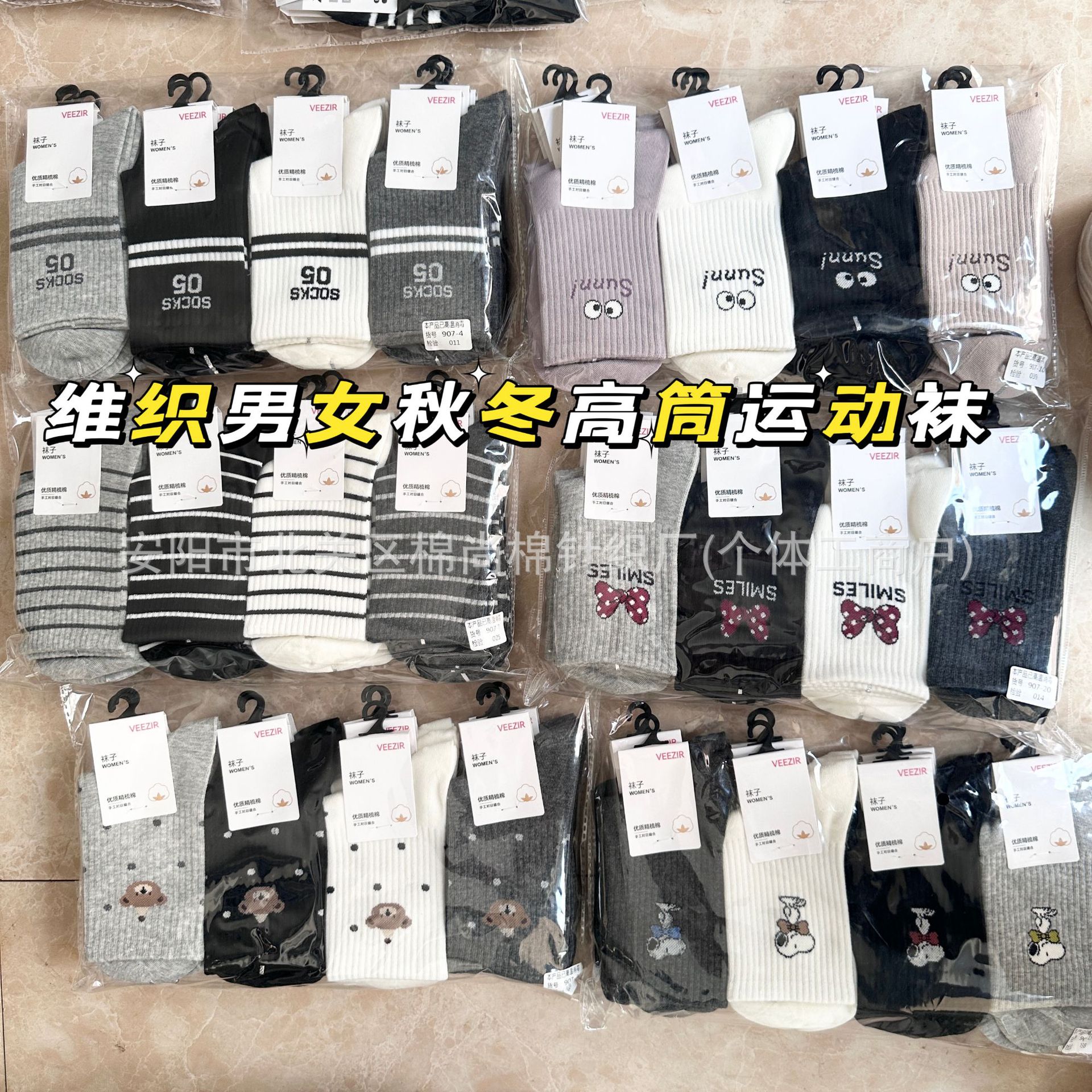 维织女士秋冬季新款运动袜学生吸汗卡通字母潮男士休闲高筒袜批发