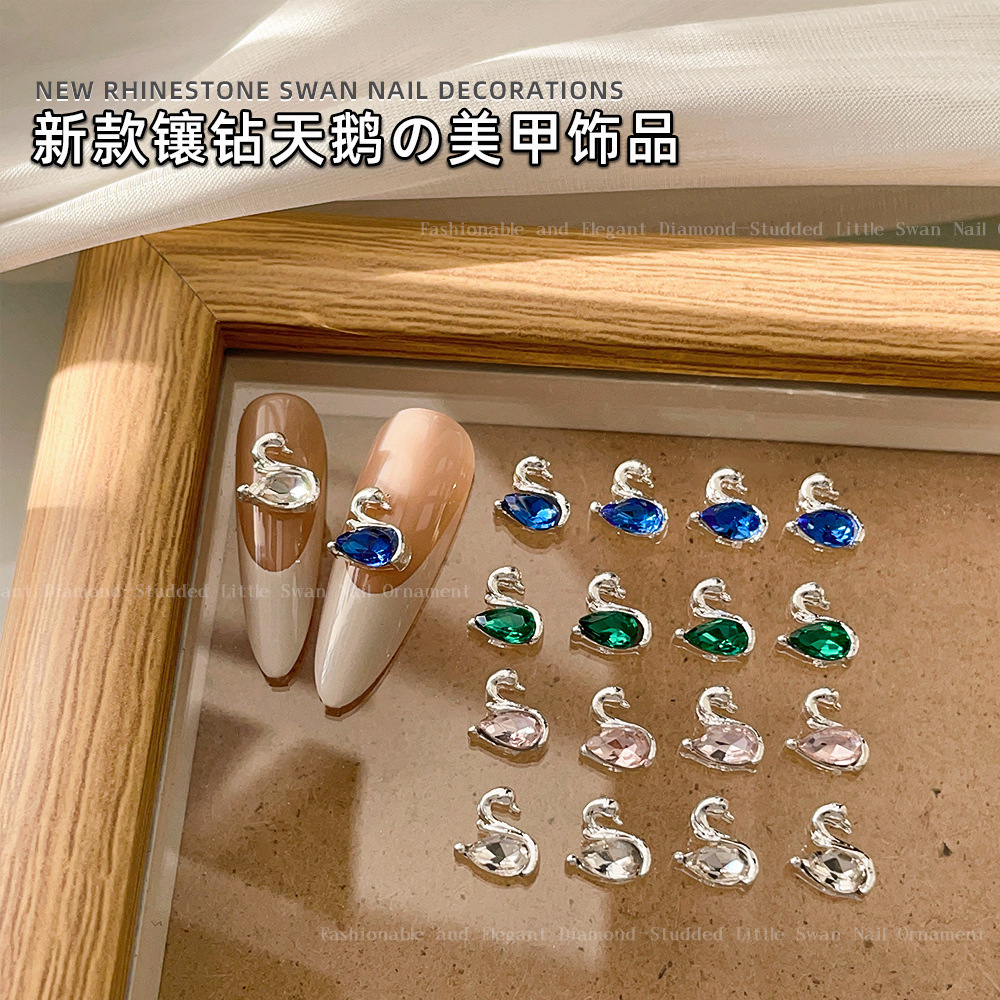 新款立体小天鹅美甲饰品 多色水滴钻百搭精致爆款美甲装饰DIY配件