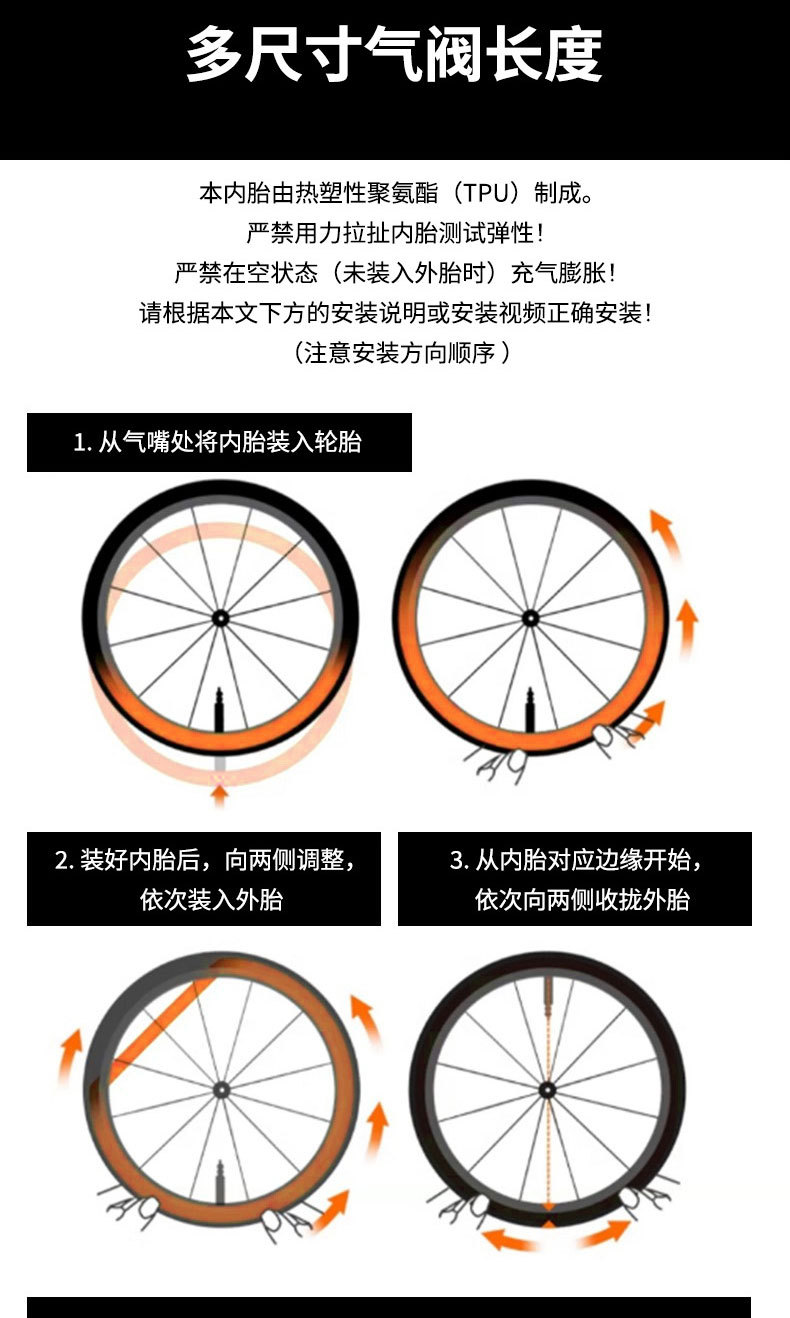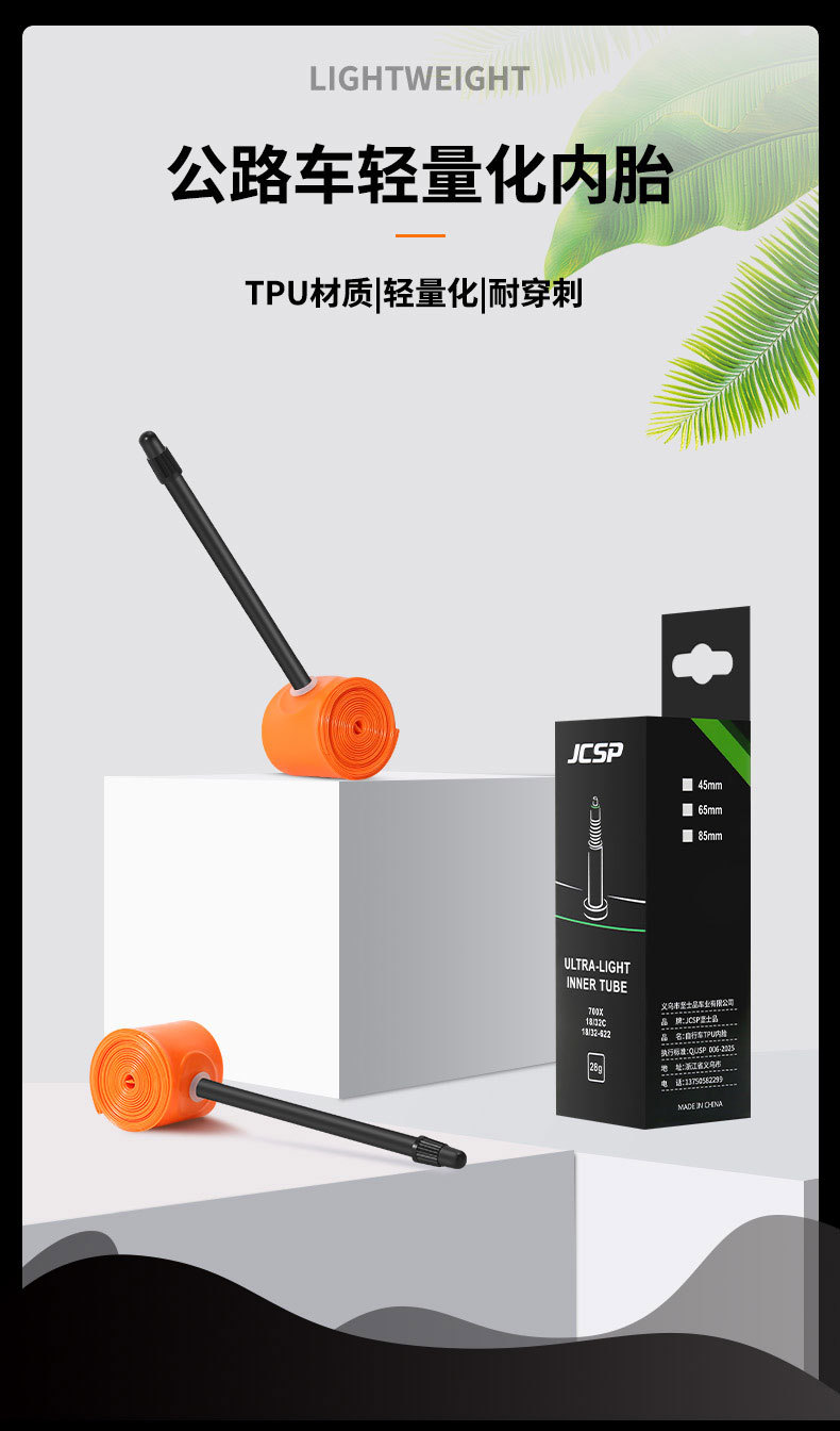 jcsp公路自行车内胎700C法嘴超轻量化TPU内胎骑行配件橙色-TPU01
