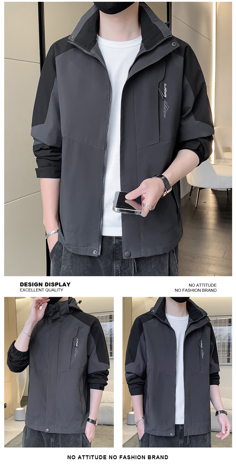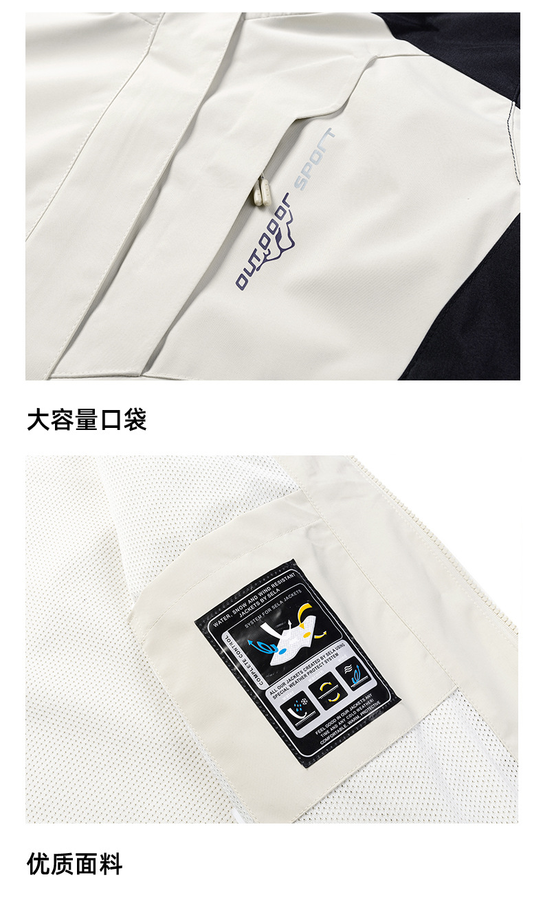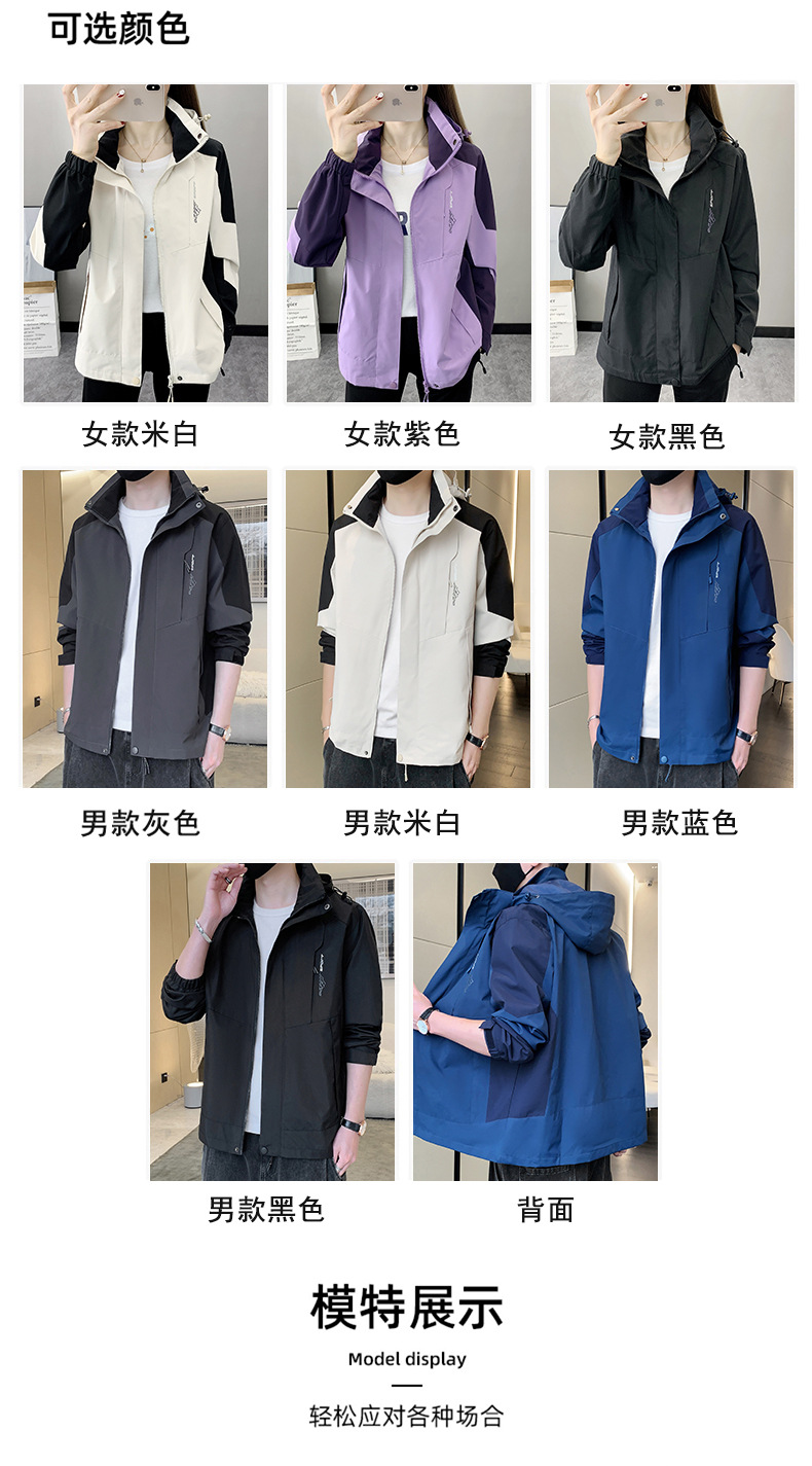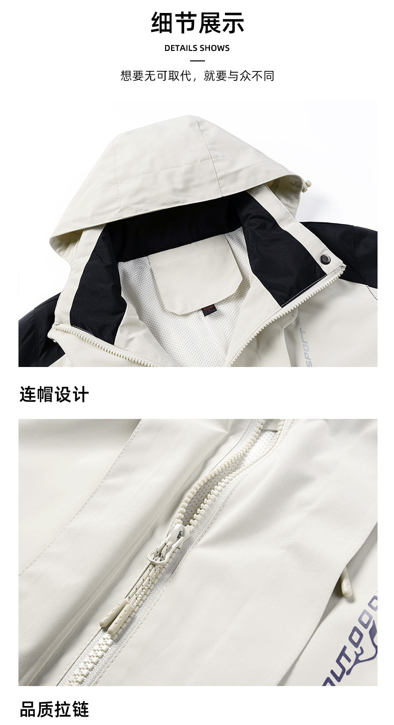 高品质爆款户外时尚休闲运动情侣冲锋衣定制男女春秋拼色可脱卸帽