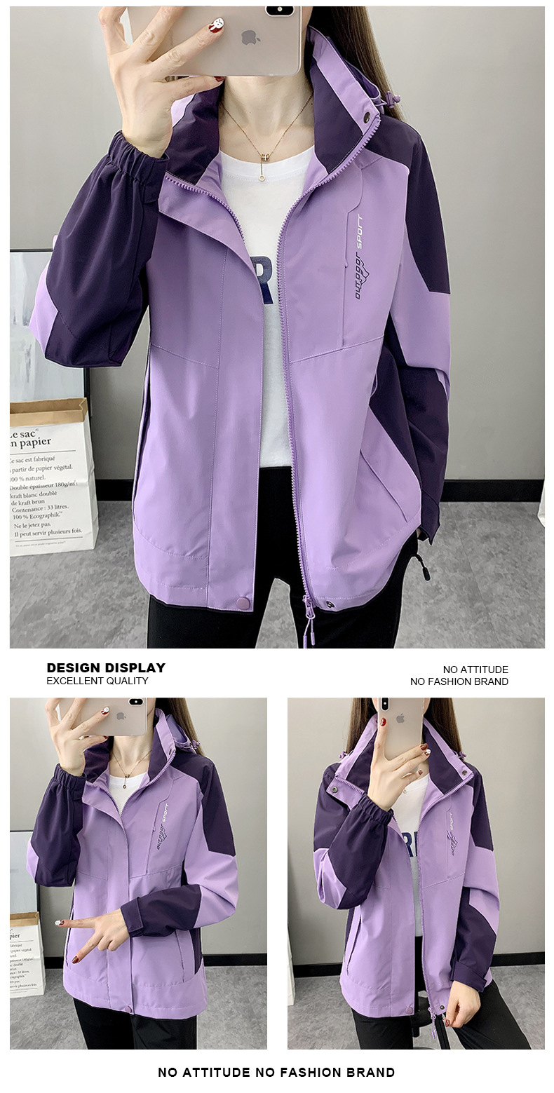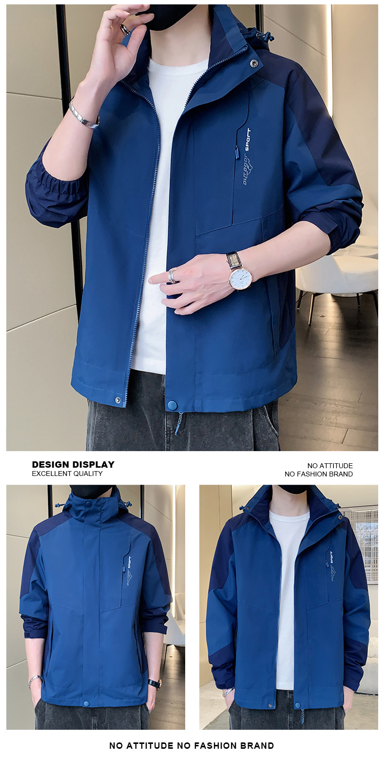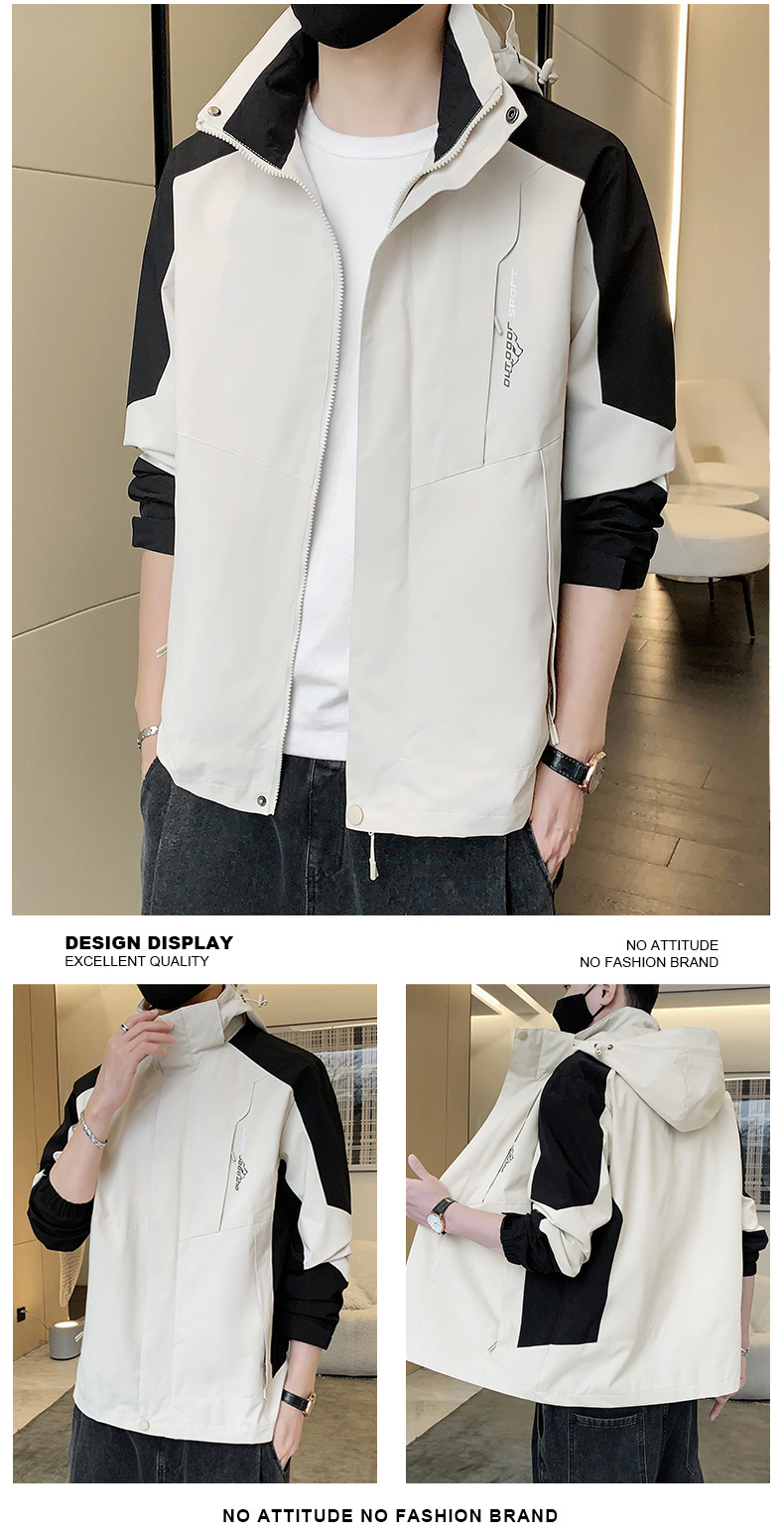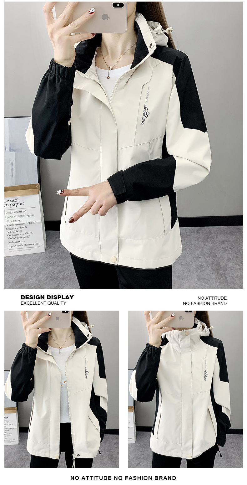 高品质爆款户外时尚休闲运动情侣冲锋衣定制男女春秋拼色可脱卸帽