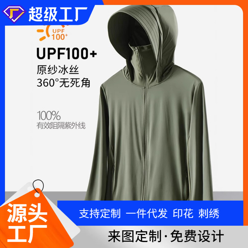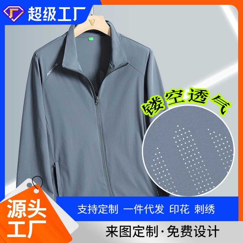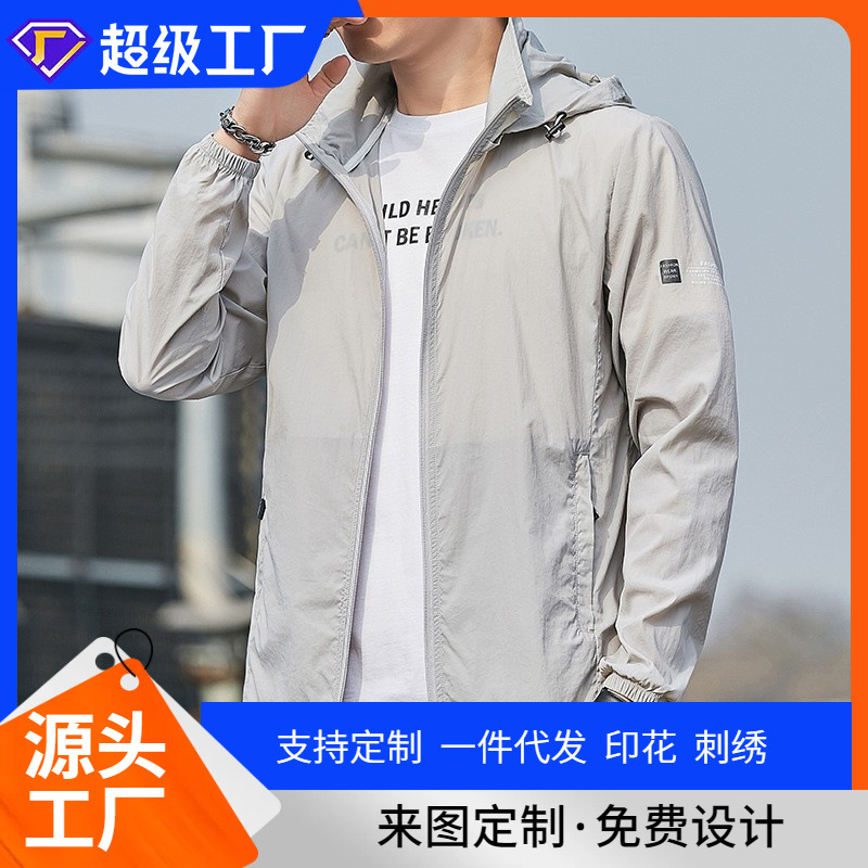 夏の新しい日焼け防止服、カスタマイズされた男性用スキン服、通気性のある超薄型フード付きジャケット、男性用アウトドアスポーツ釣り服