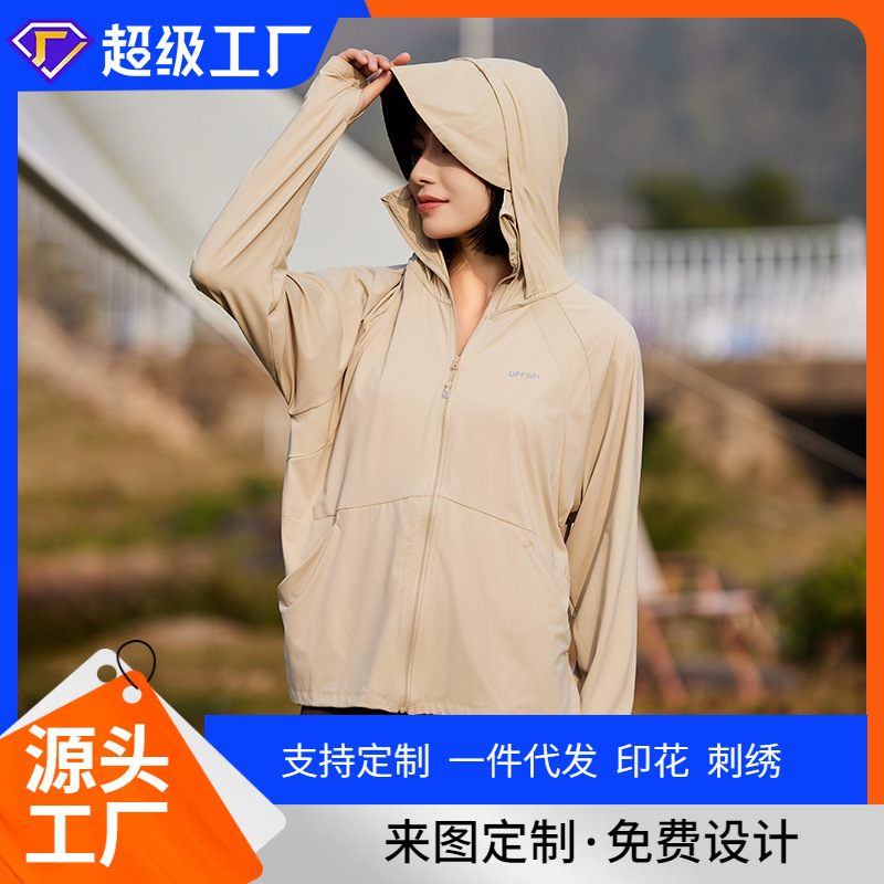 UPF50+ 細かく編まれたアイスシルク日焼け防止服カスタムプリント女性と男性の夏薄い肌の服抗 UV ジャケット