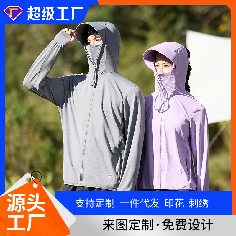 男女兼用、目の保護付きのカップルモデル、マルチカラーの女性用日焼け止め服、カスタマイズされたトレンディな女の子モデル、UV保護スキン