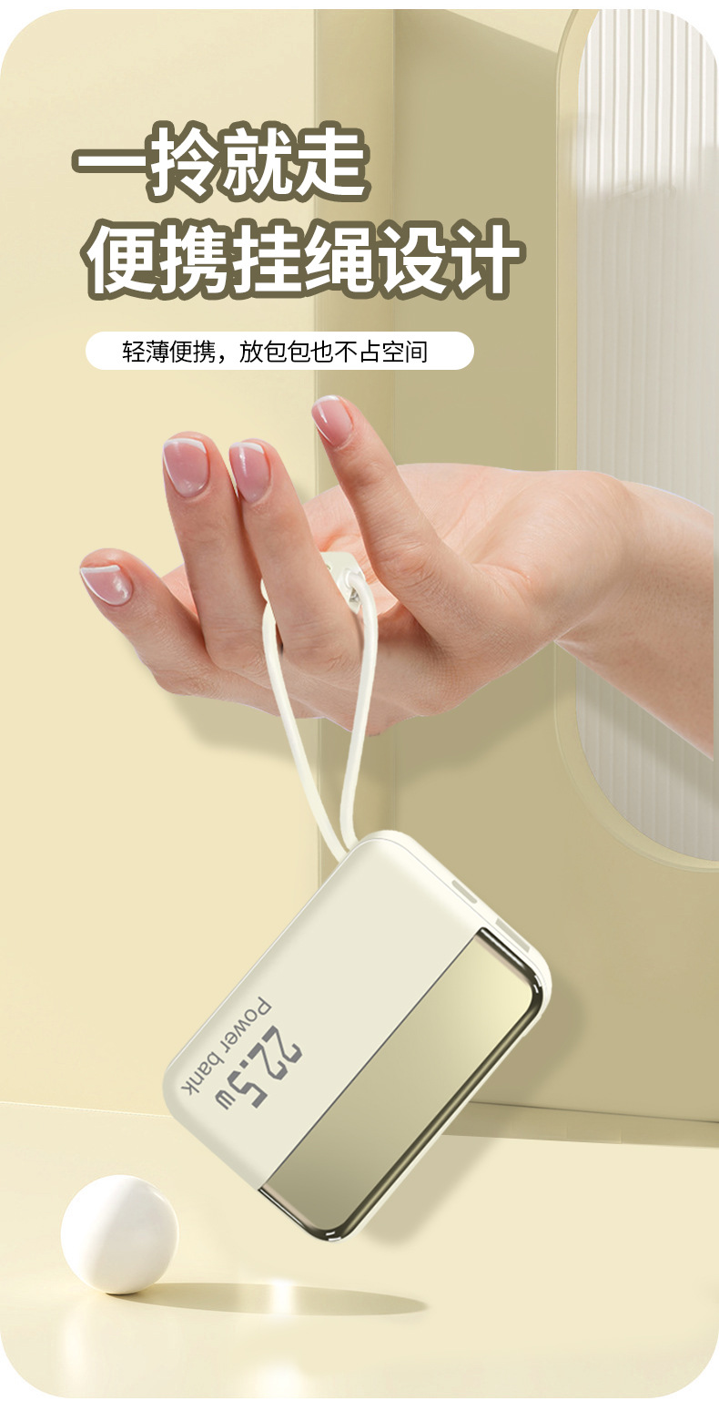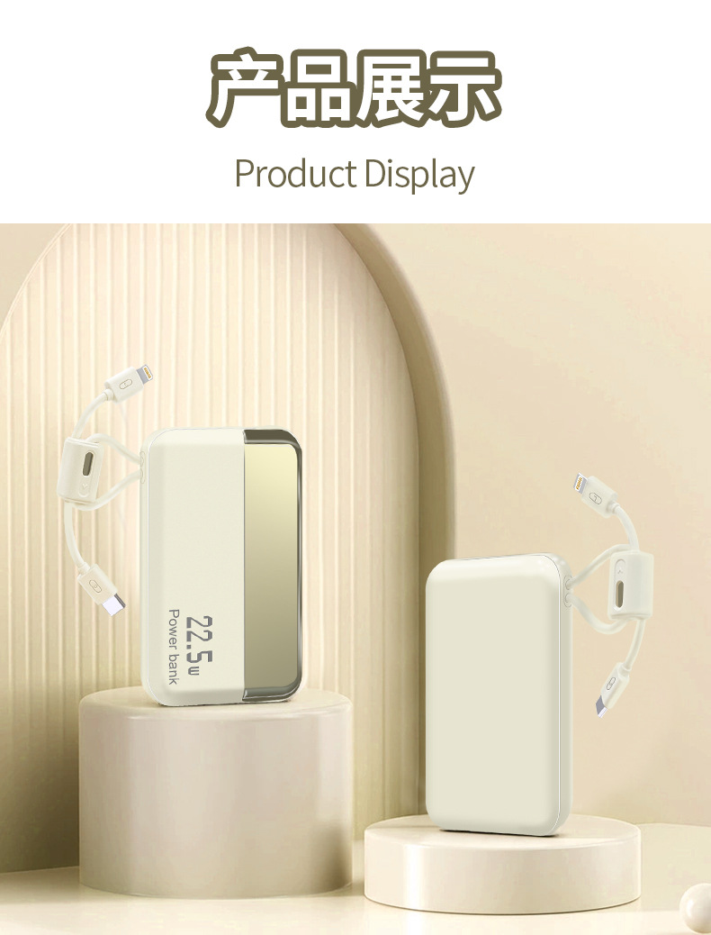セルフケーブル22.5W超高速充電宝10000ミリアンミニギフトカメラ移動電源カスタムロゴ
