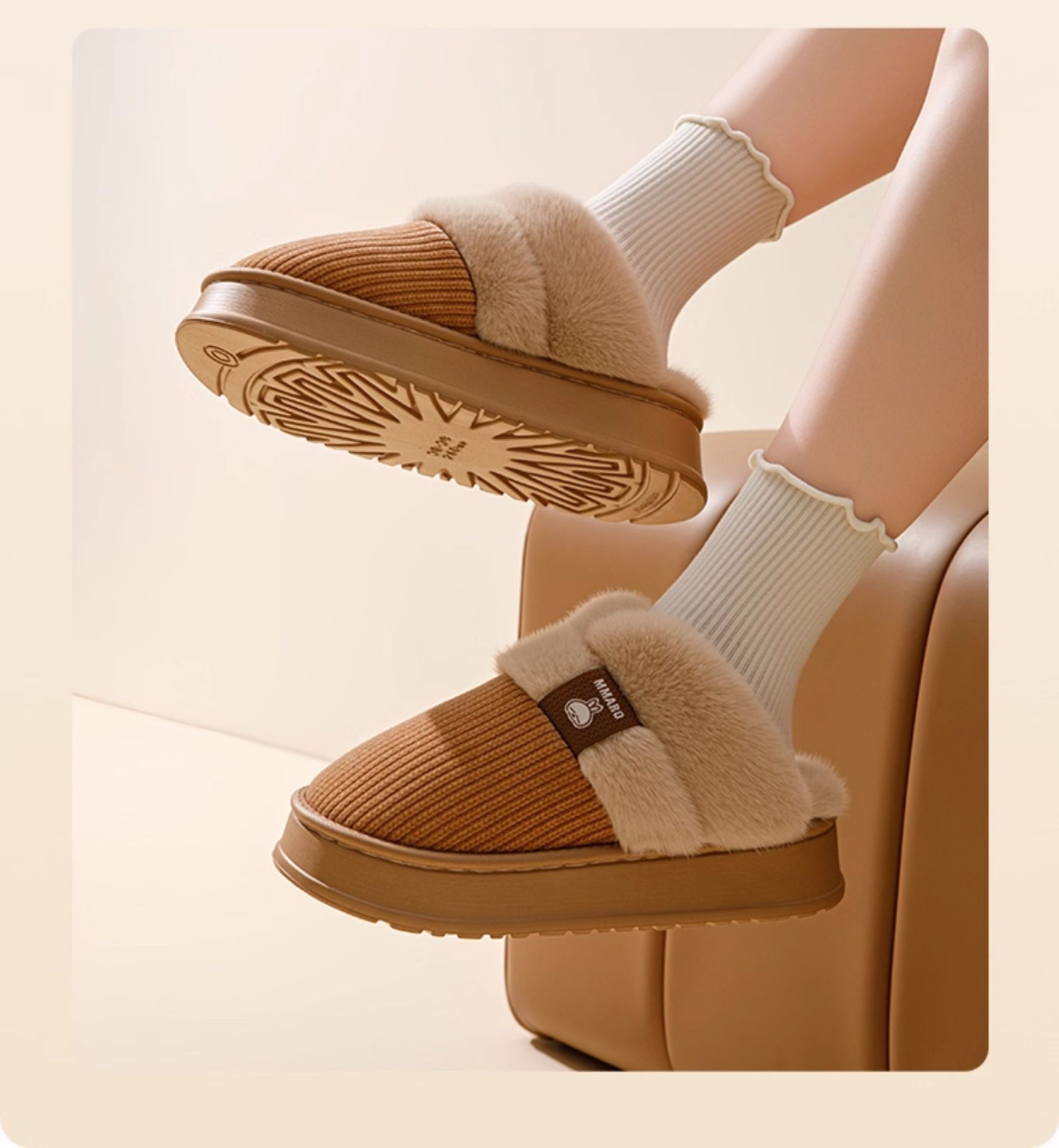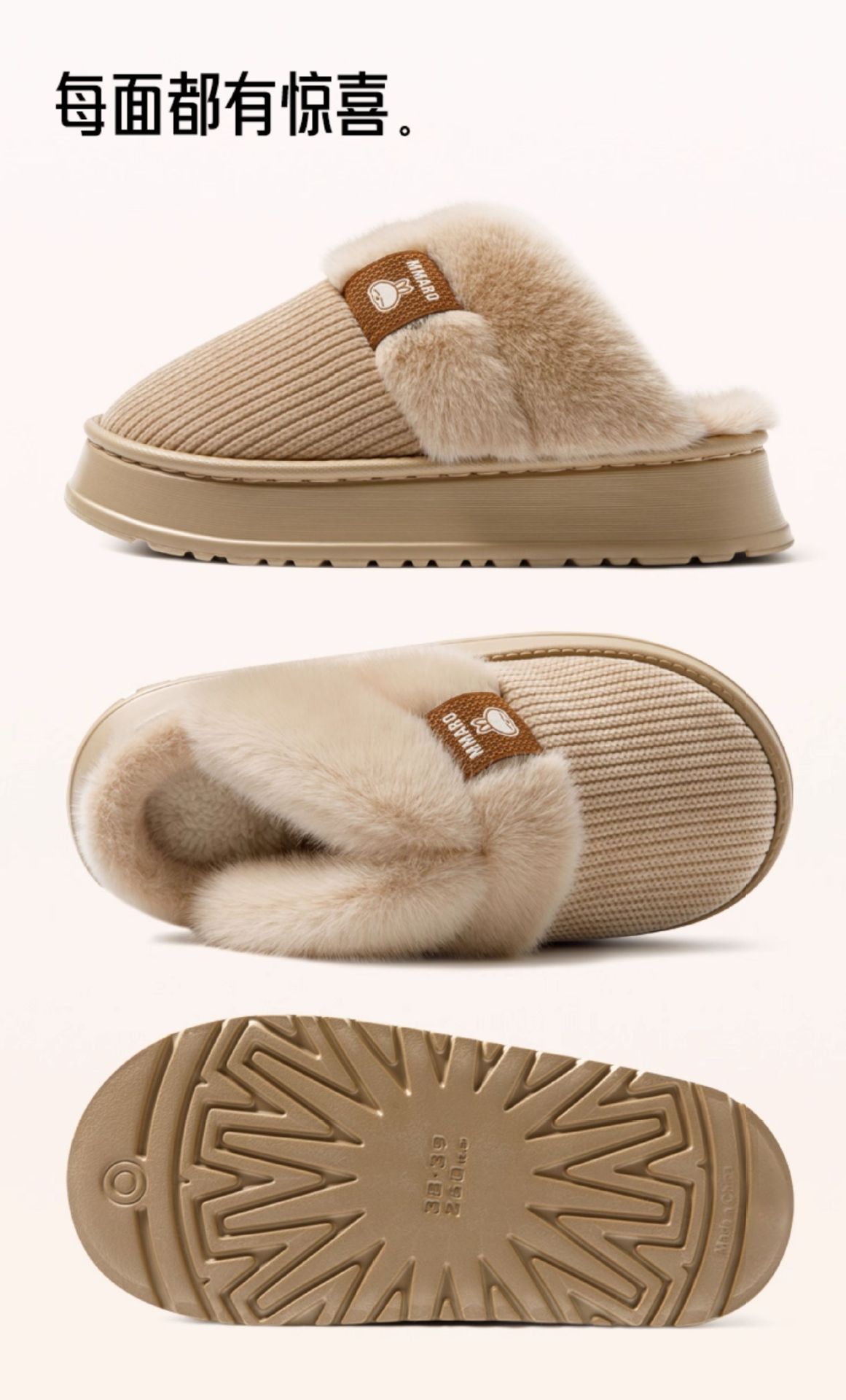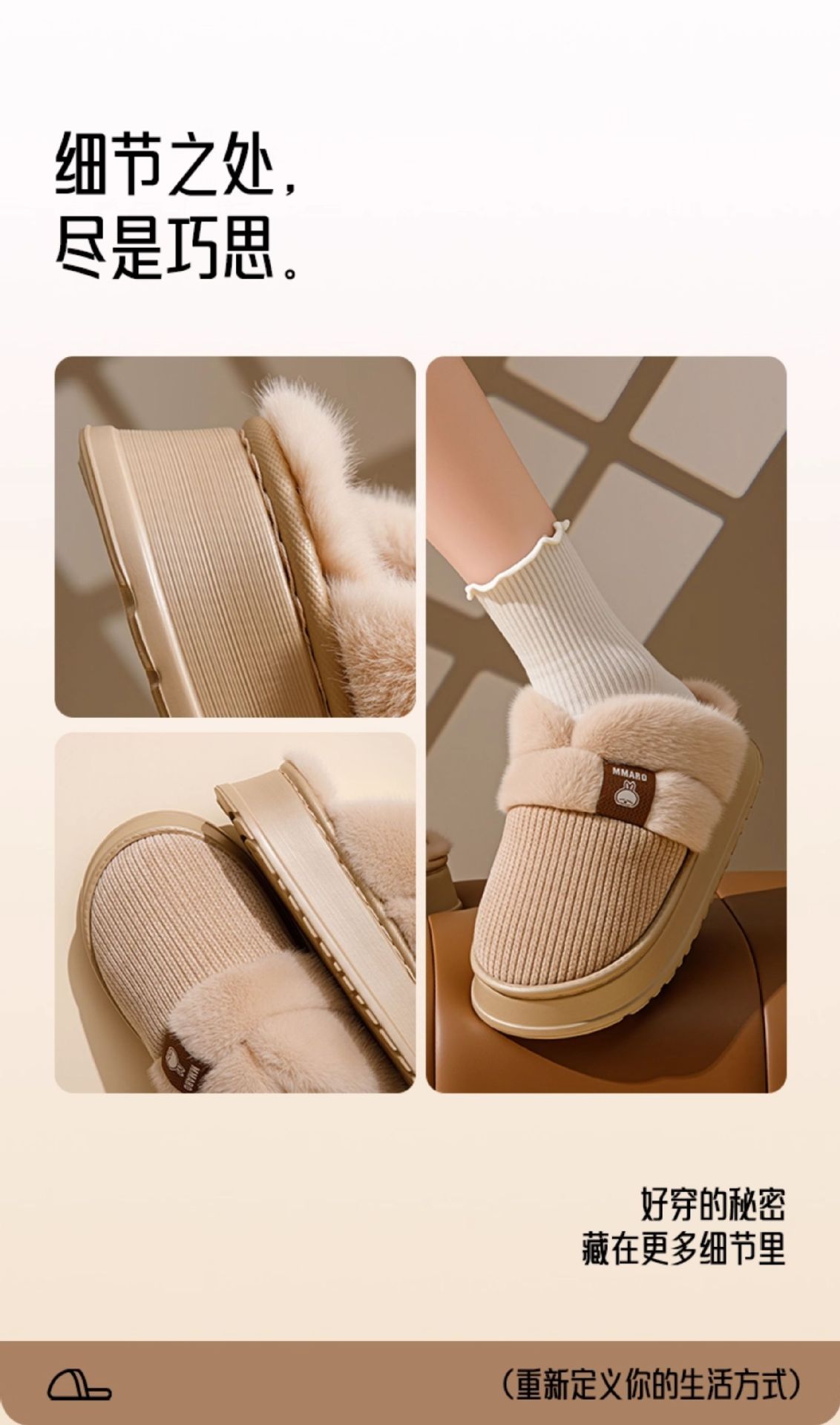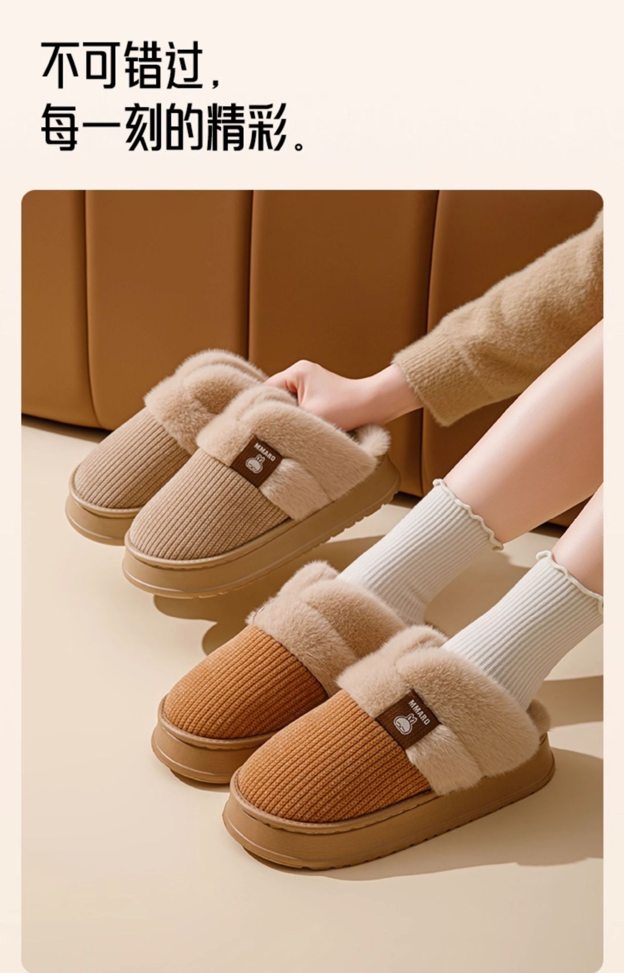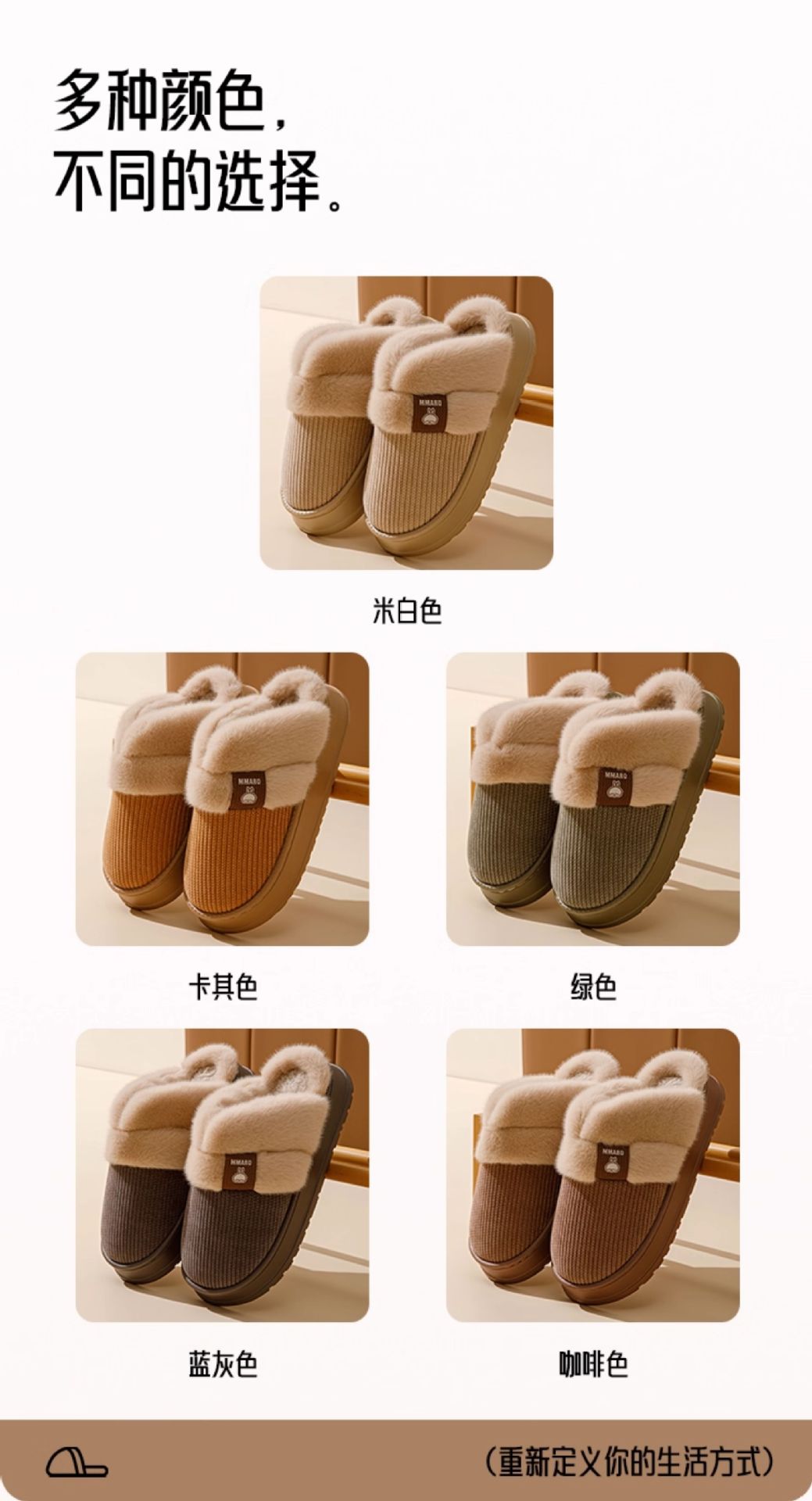 秋冬綿スリッパ女性カップルバッグと保温滑り止め室内の家の毛とベルベットの外に月子綿靴男を着る