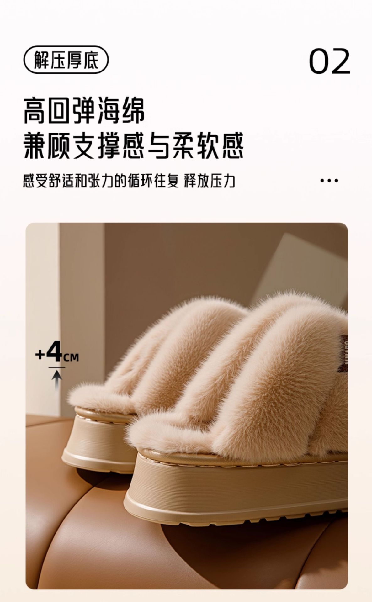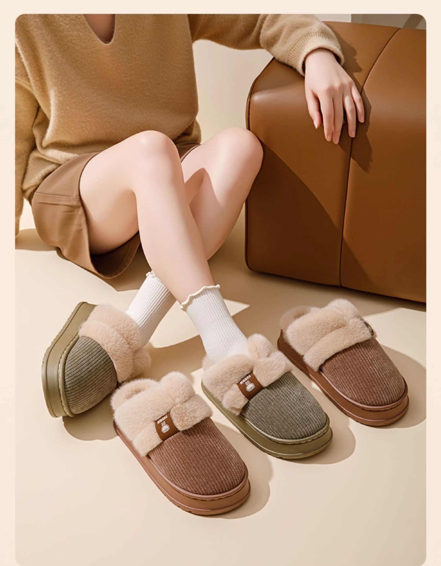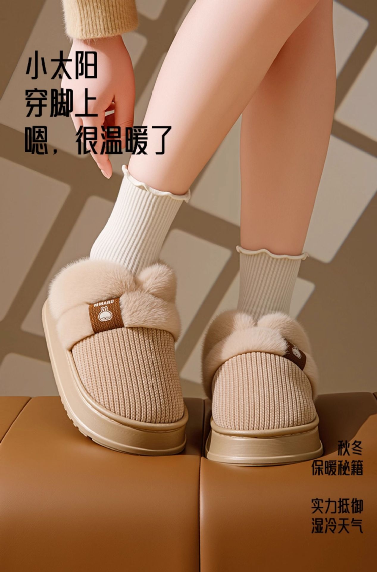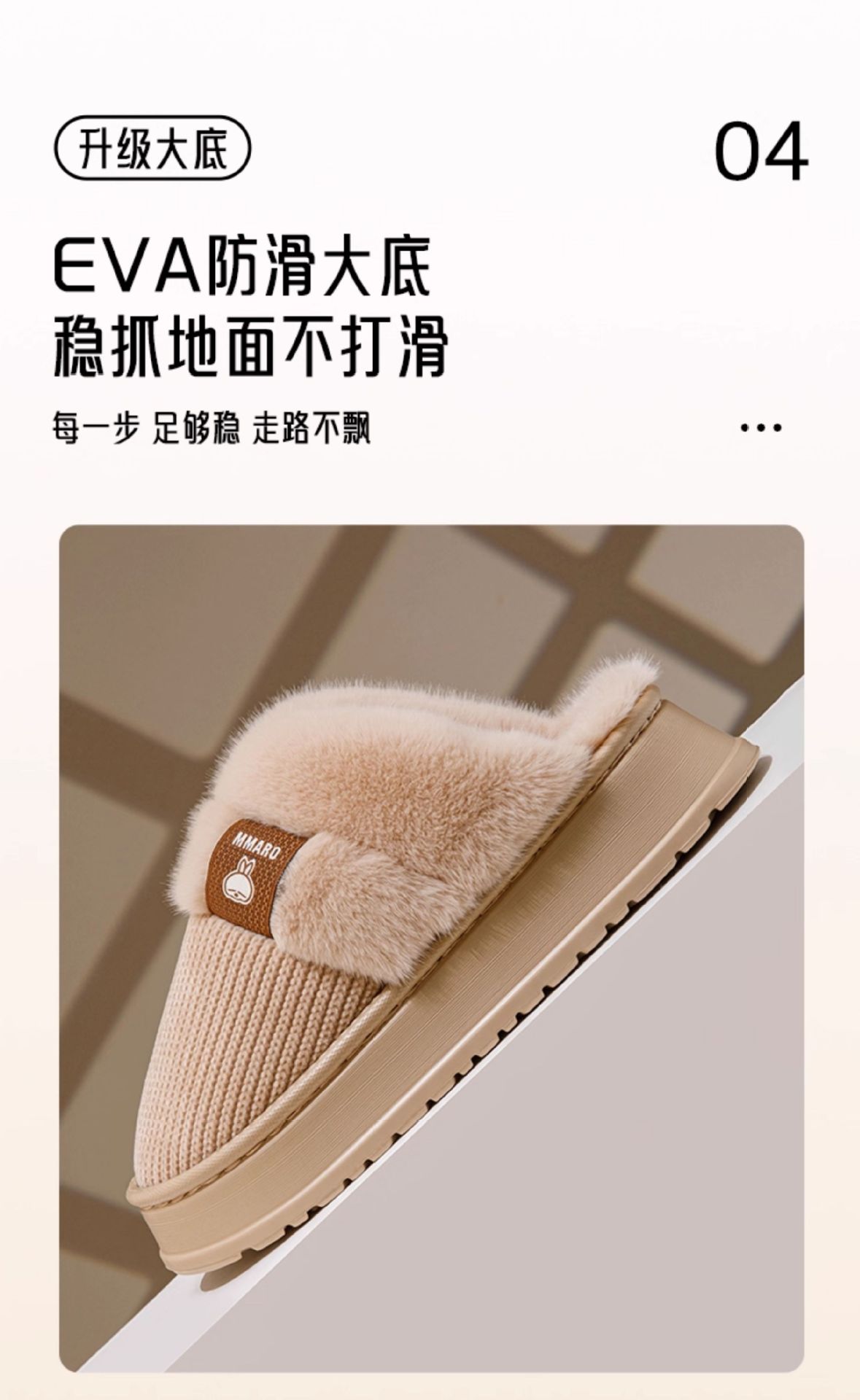 やくざウサギ綿スリッパEVAさん秋冬2024室内の厚い底のぬいぐるみカップルスリッパの女性