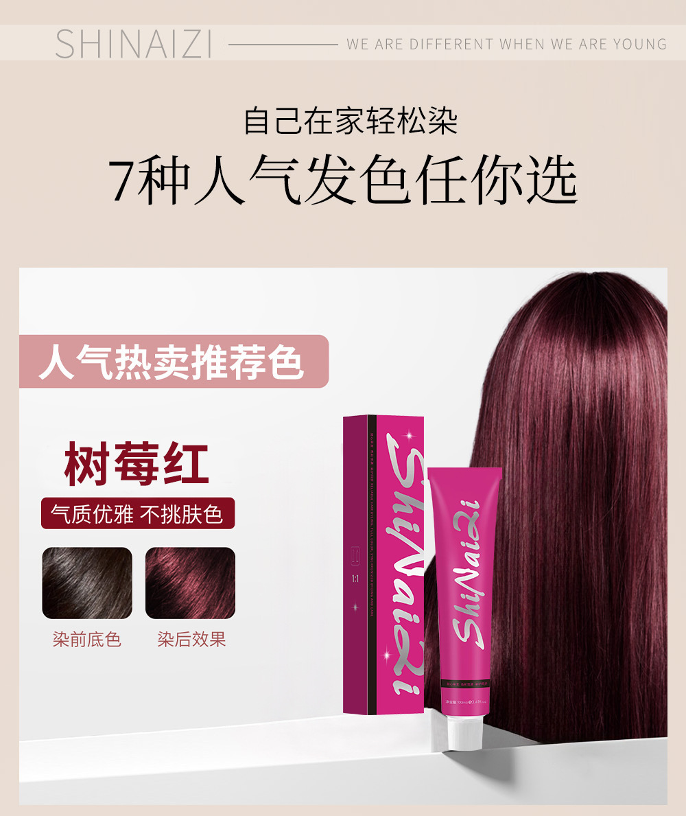 免漂单支染发剂纯植物天然不伤发树莓红色植物染发膏自己在家染发