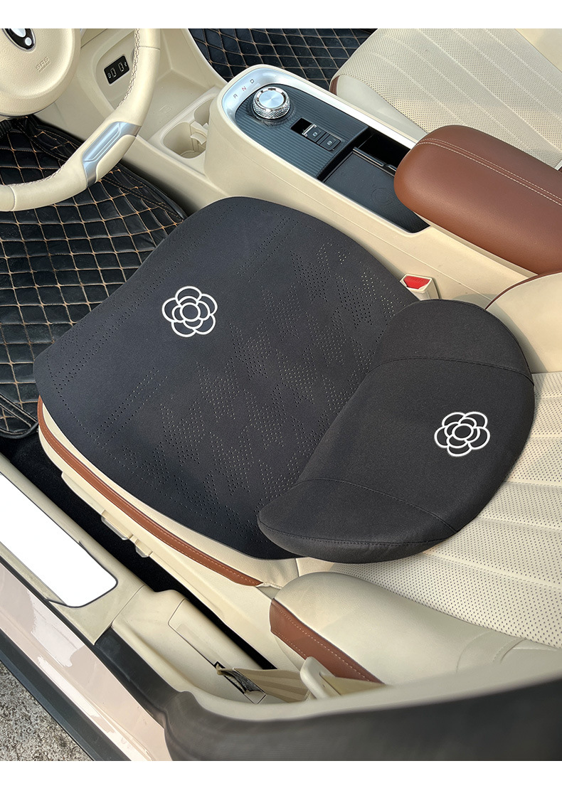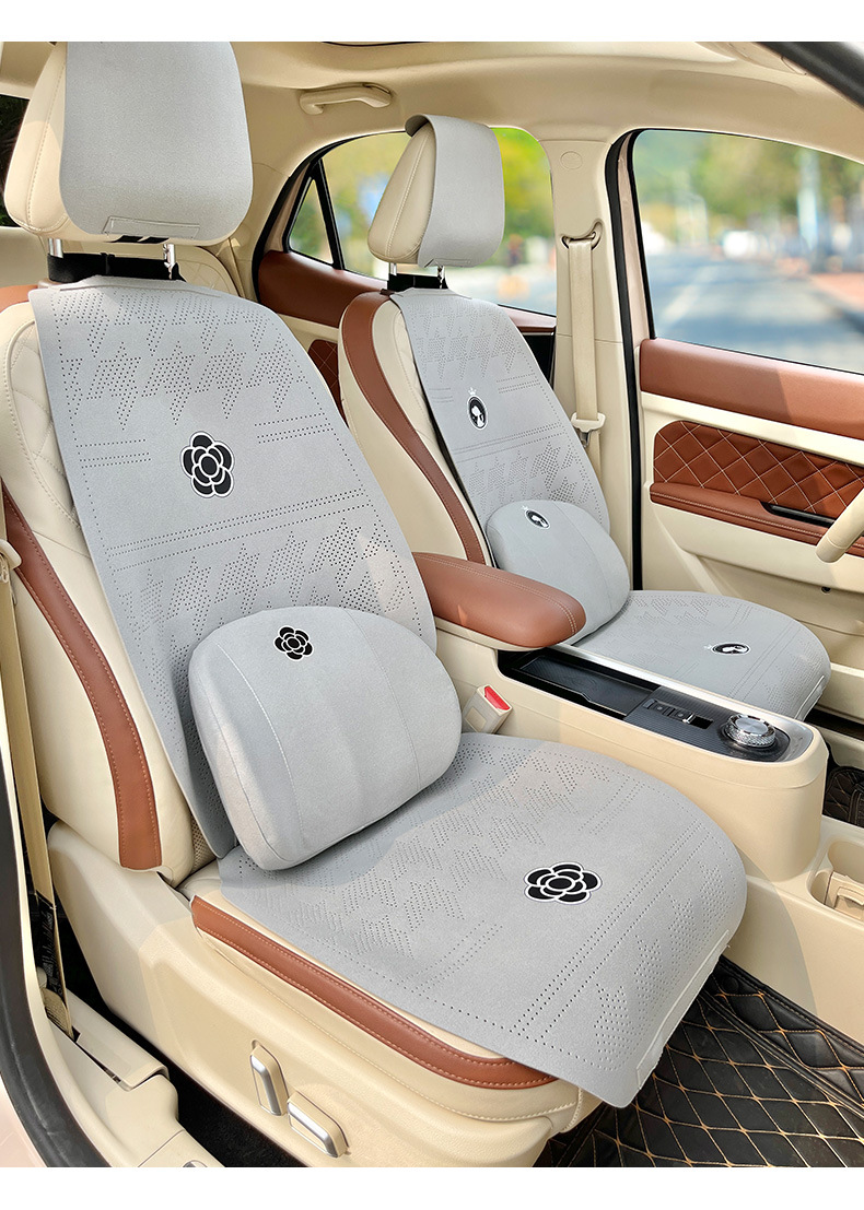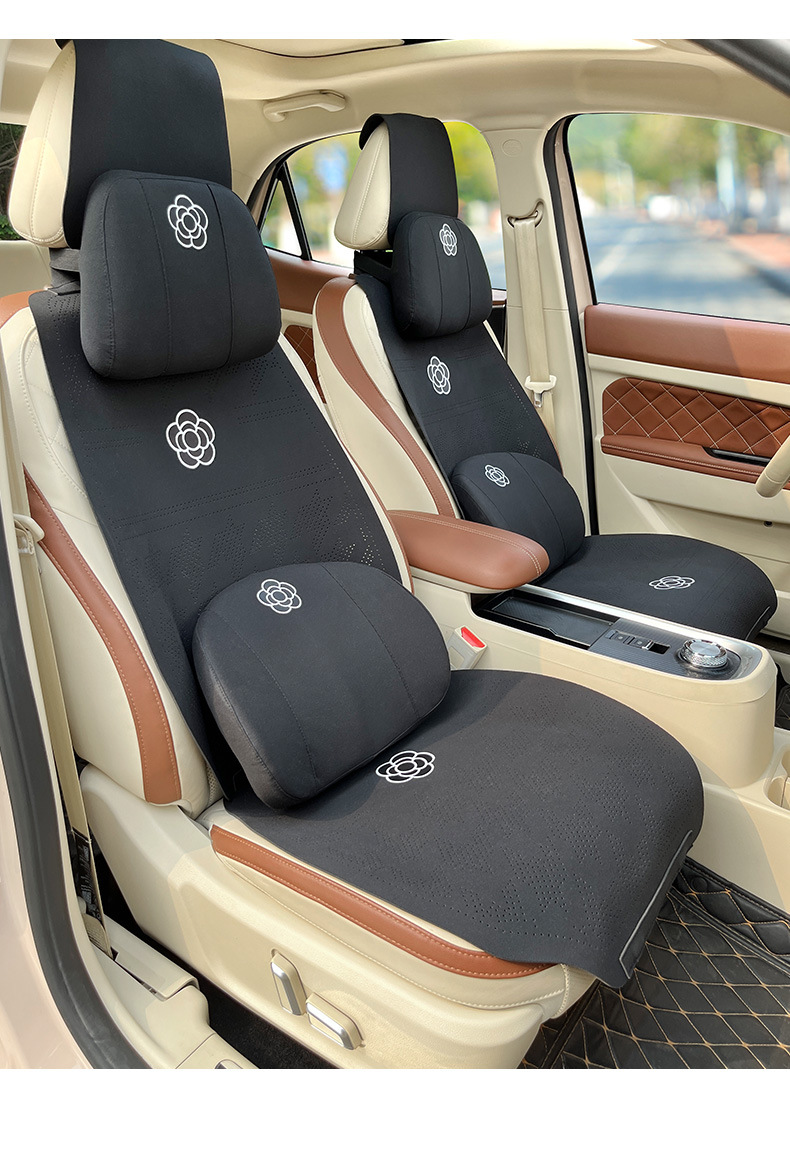 汽车坐垫四季通用高级感山茶花单片亚麻座垫冬季车内座椅套女士