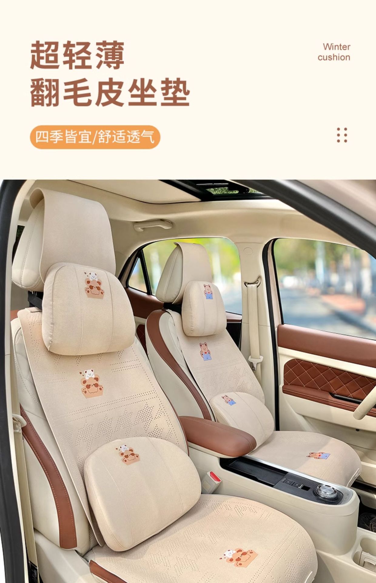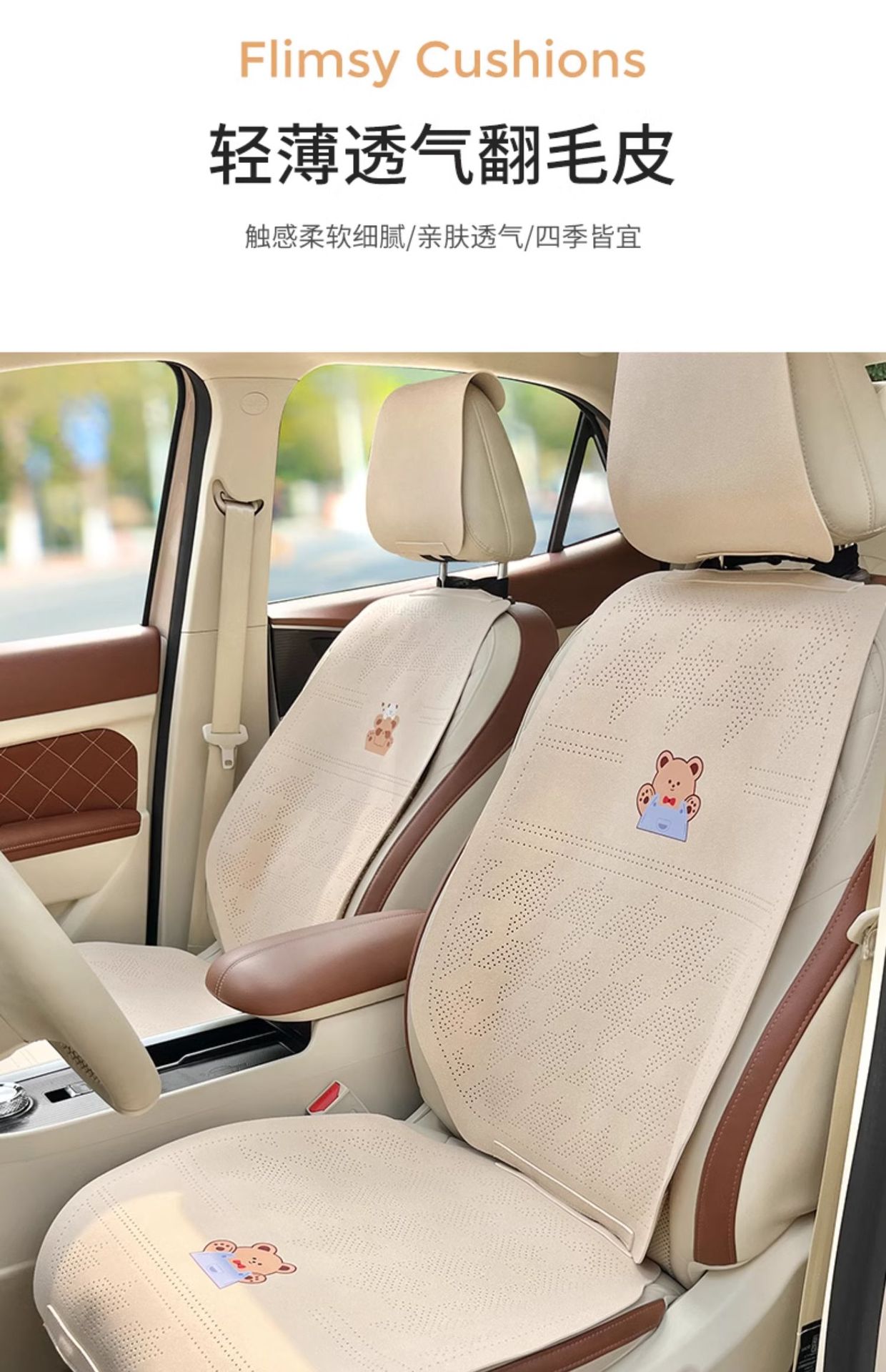 汽车坐垫夏季翻毛皮座椅套装亲肤透气凉垫简约高级感卡通可爱女
