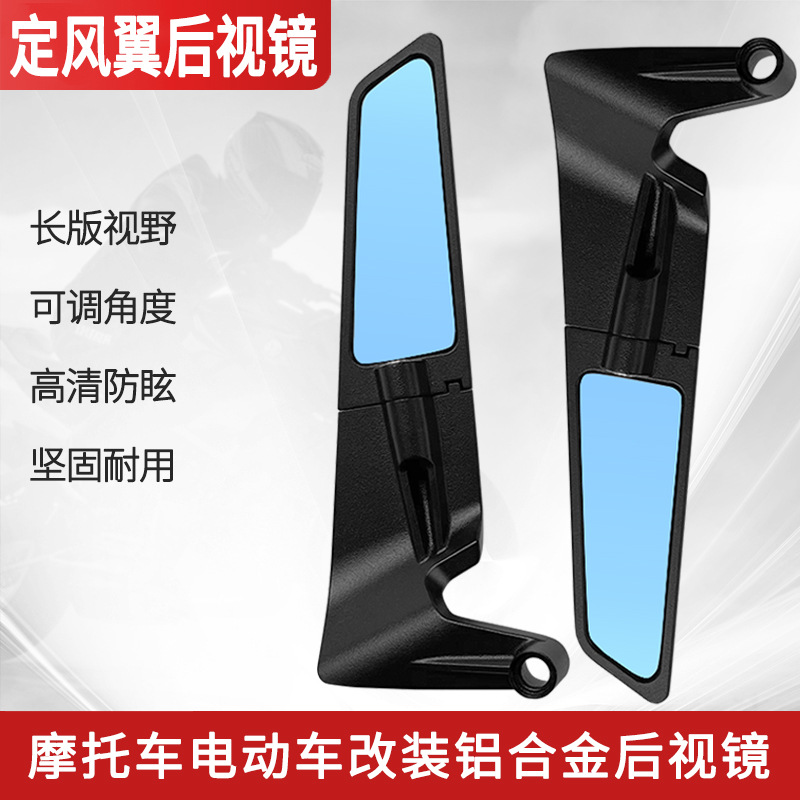 オートバイアクセサリー修正された固定翼バックミラーストリートカースポーツカー CNC アルミ合金ブルーガラスリフレクター反転ミラー