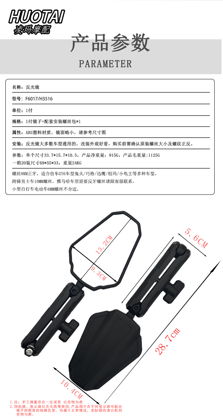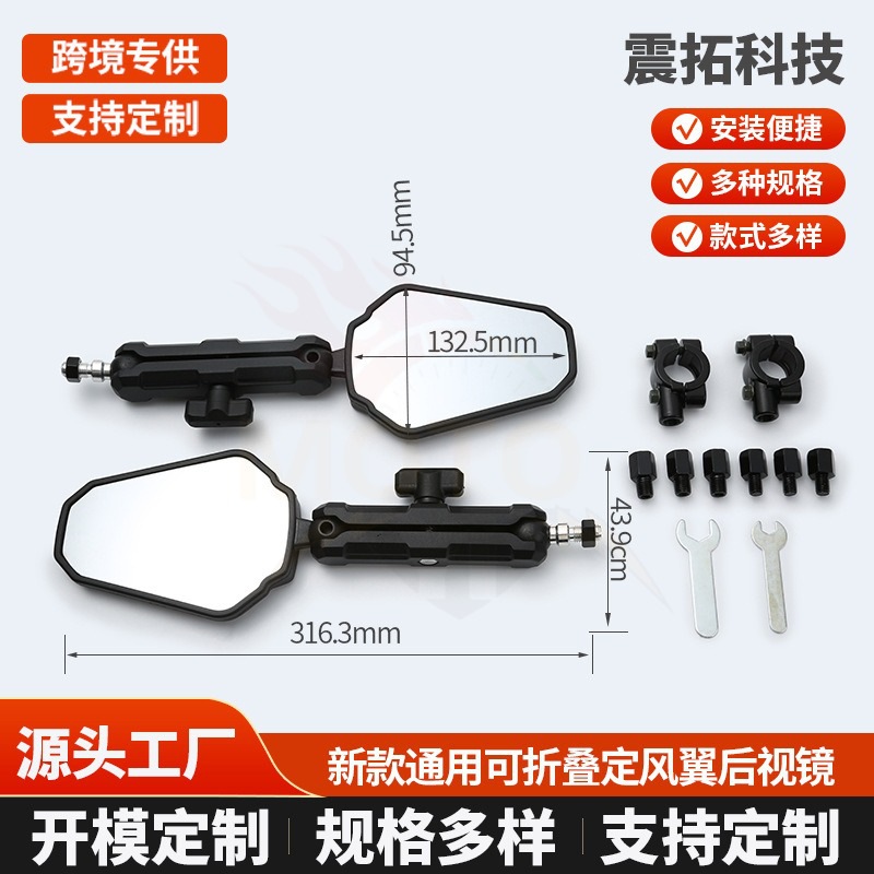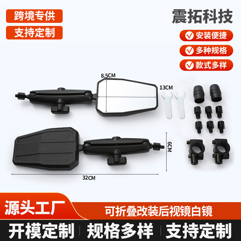 跨境摩托车通用可折叠后视镜越野踏板摩托车高清大视野反光镜批发