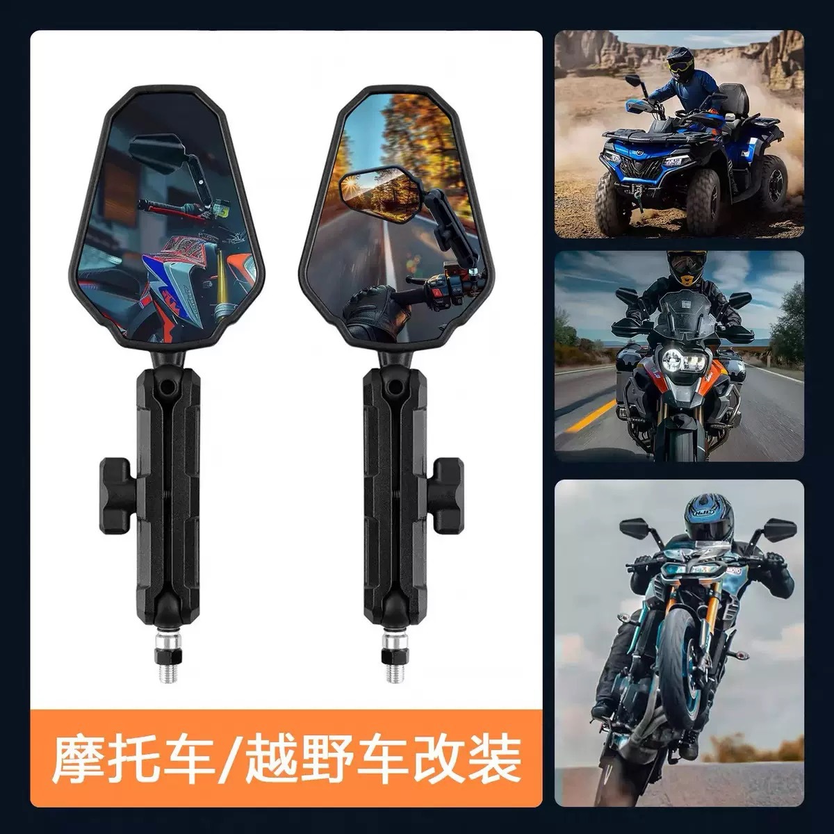 定 制铝合金摩旅拉力越野摩托车ADV通用折叠防盗反光镜3C大视野