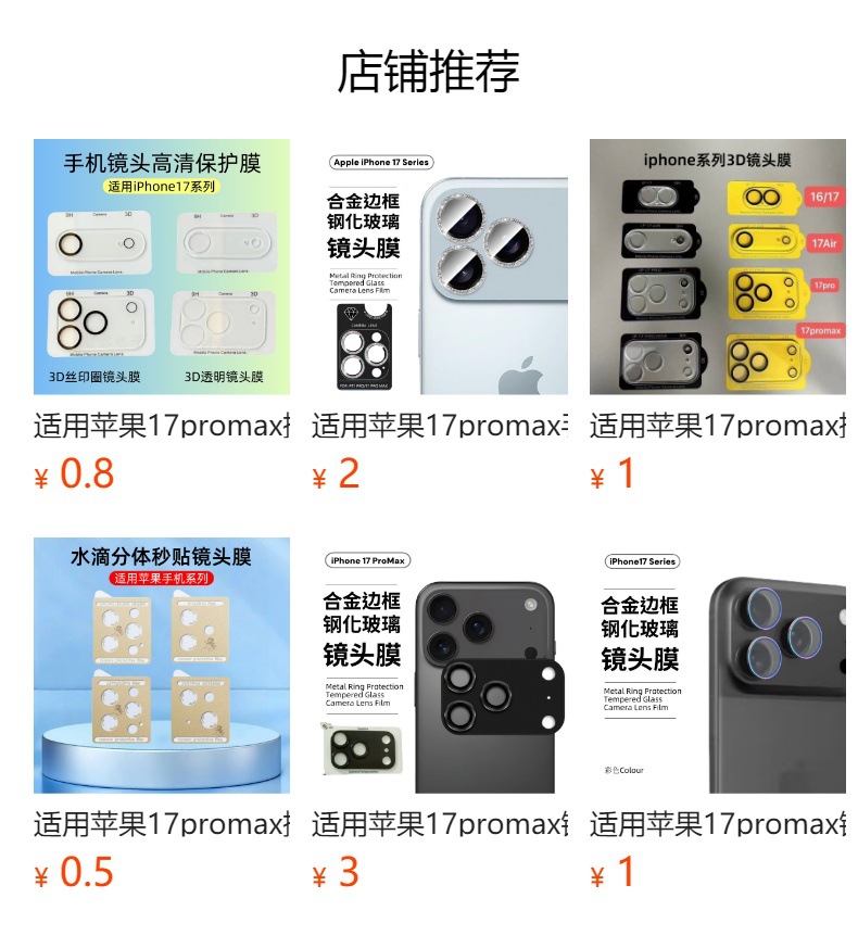 适用苹果17系列镜头膜镂空底座膜iphone17promax相机镜头保护贴膜