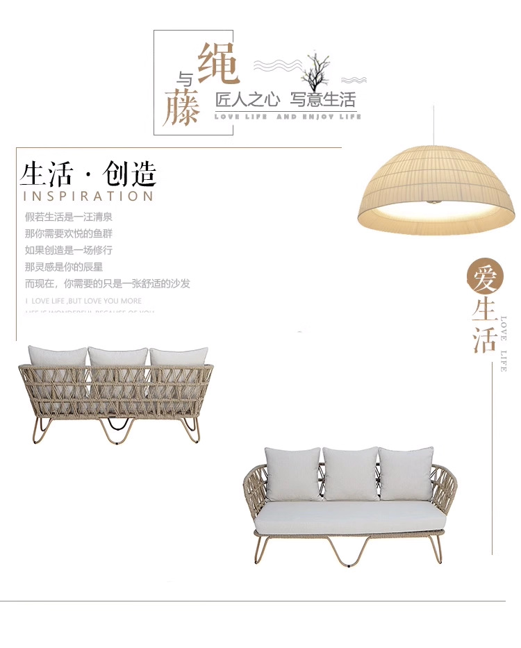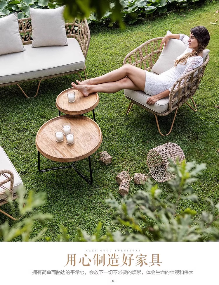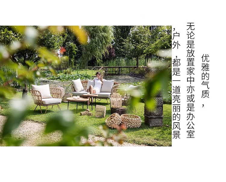 北欧アウトドア籐編みソファ屋外ベランダ民宿露天庭別荘ガーデンカジュアルシングル籐椅子家具