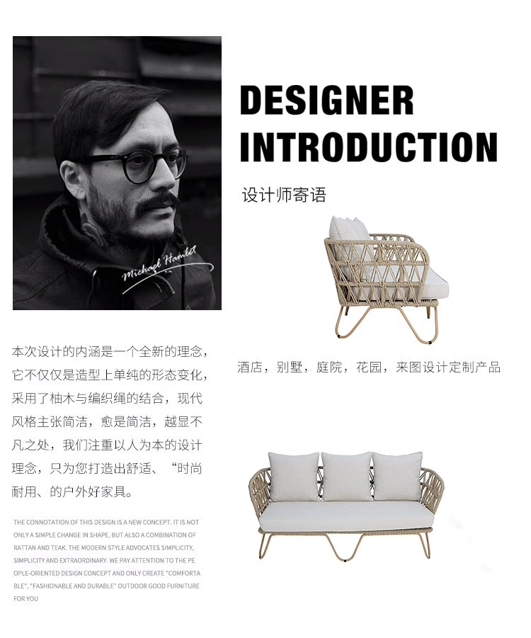 高端户外休闲沙发酒店别墅庭院花园露台室外防水防晒编织家具沙发