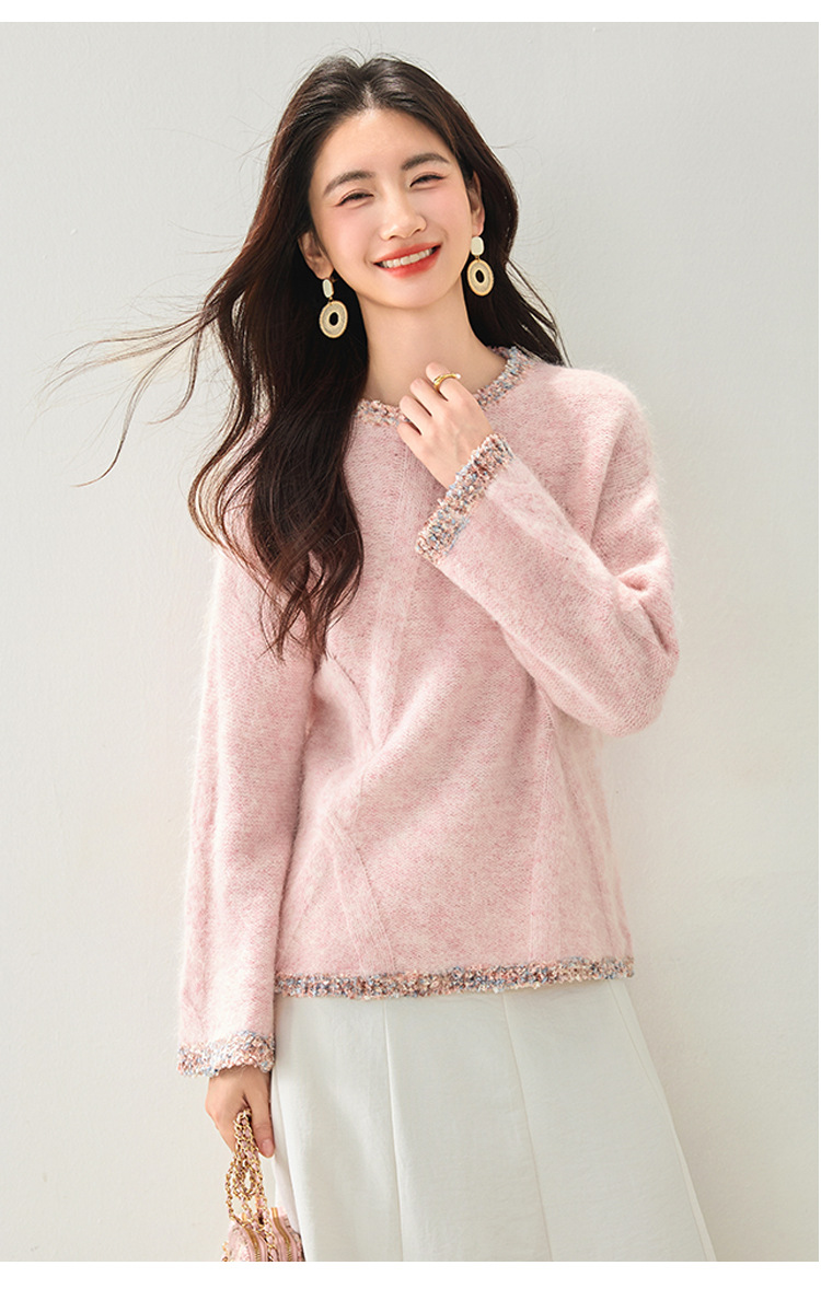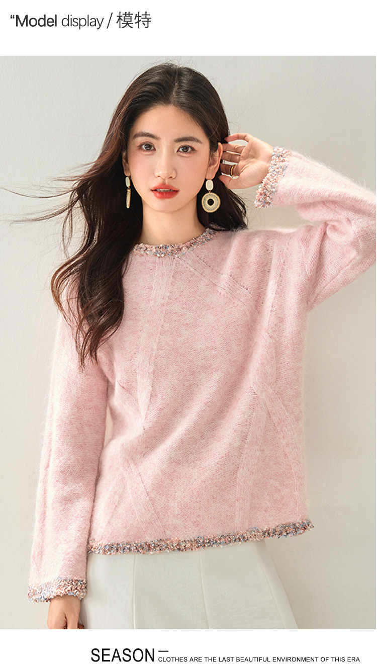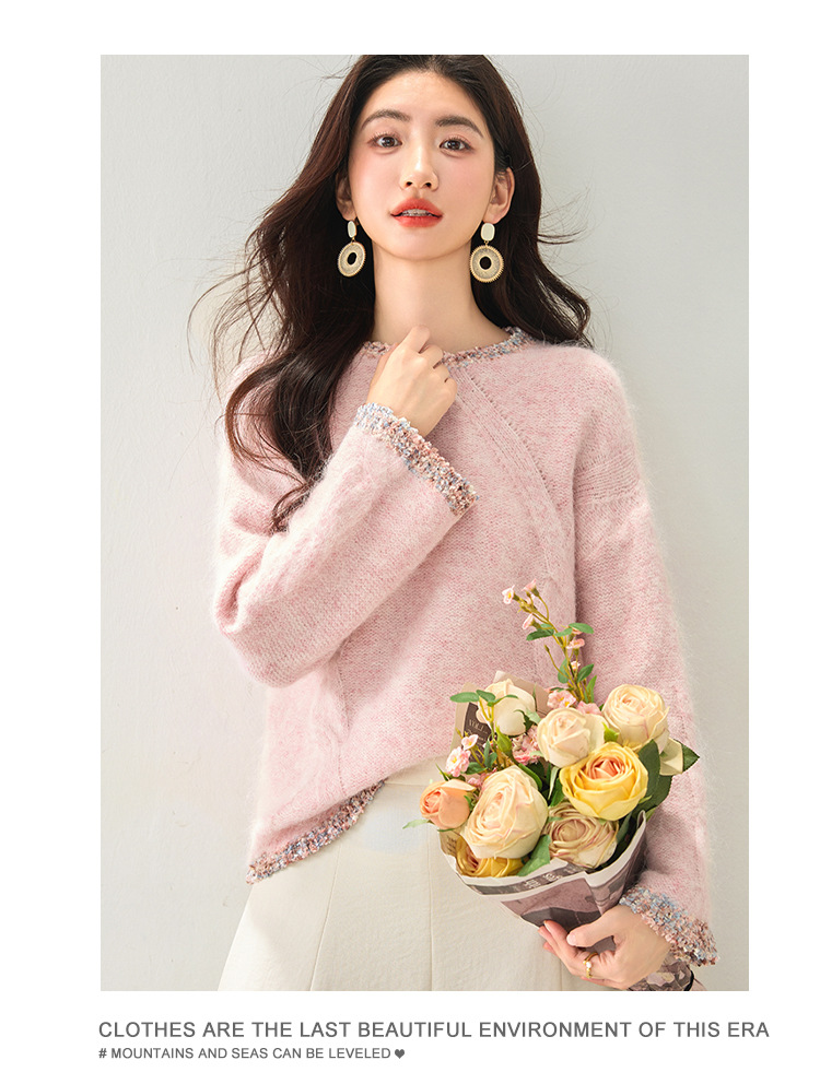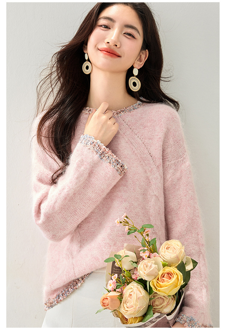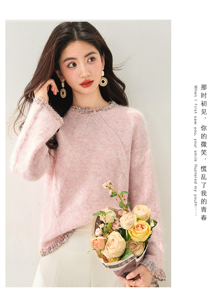 实拍◆2025小香风羊驼毛羊毛粉色毛衣针织衫女秋冬宽松气质上衣