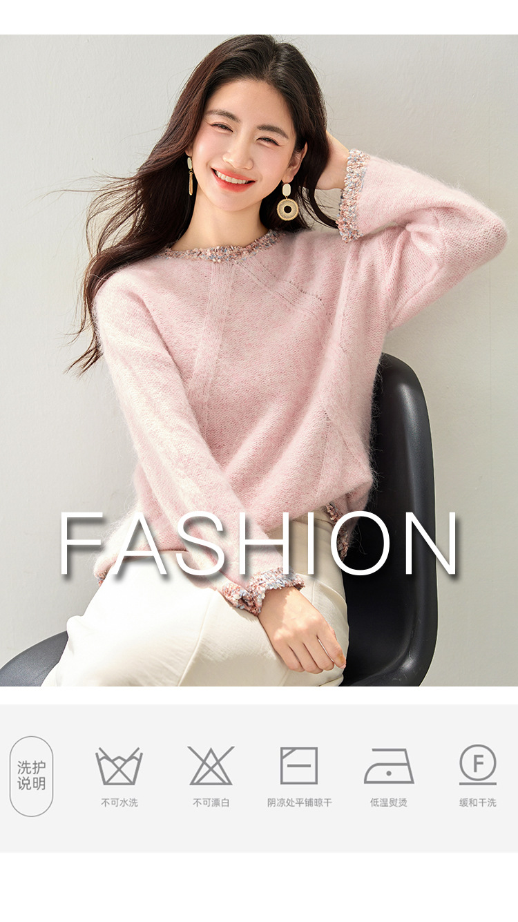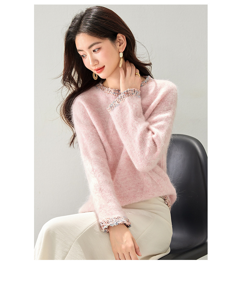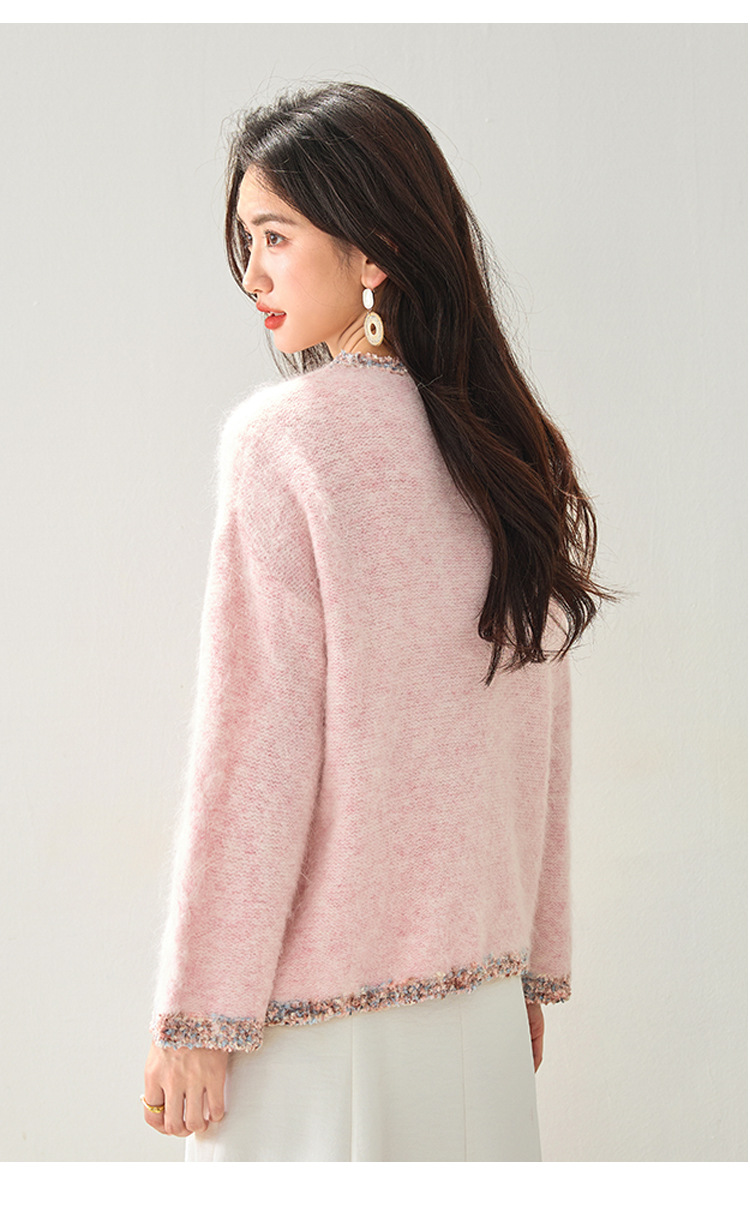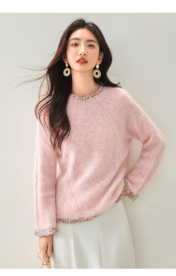 实拍◆2025小香风羊驼毛羊毛粉色毛衣针织衫女秋冬宽松气质上衣