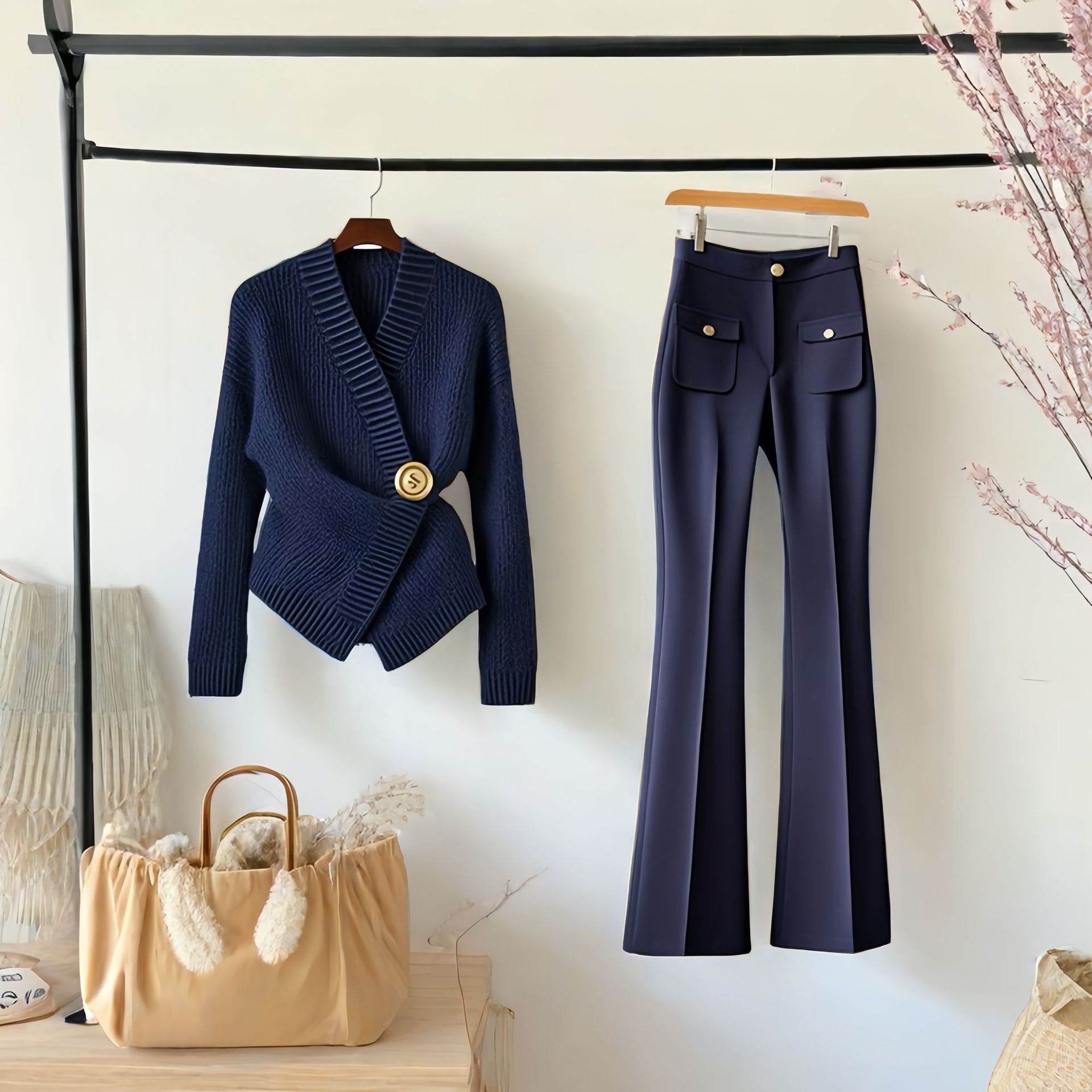 初秋ファッションセット2025新作韓国風ライトマチュアスタイルイレギュラーデザインニットシャツワイドパンツツーピースセット