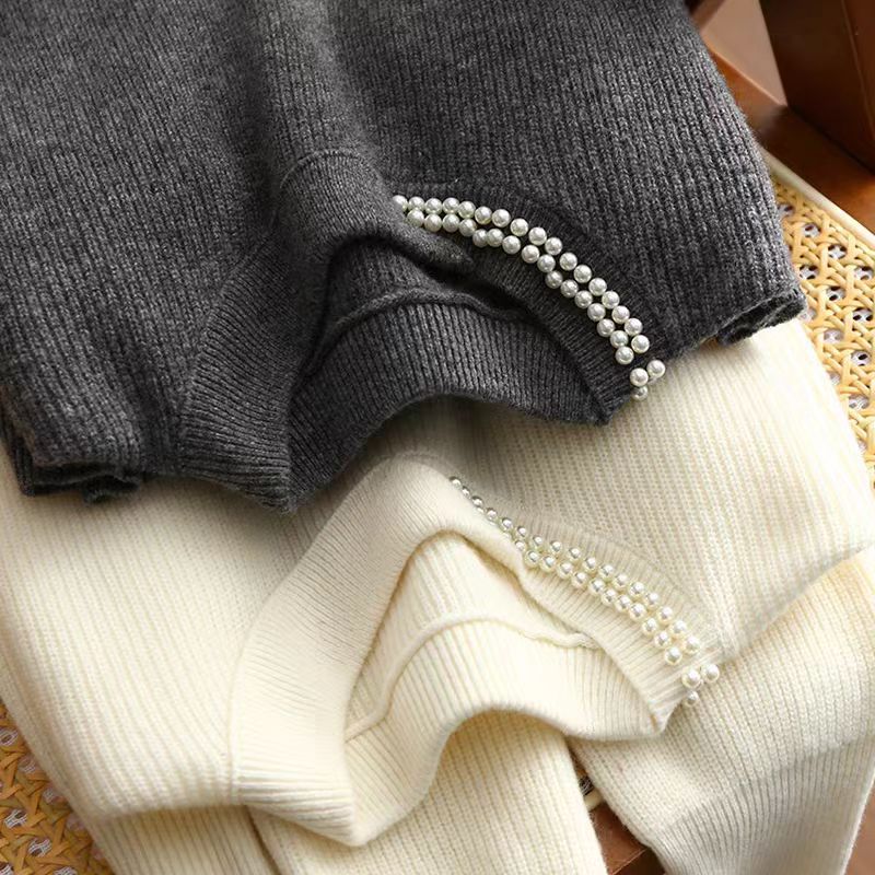 重工パール襟ニットセーター レディース 2025秋冬新作 フレンチシンプルデザイン ウールランタン袖セーター