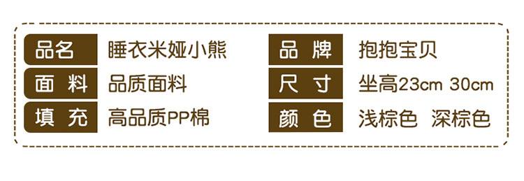 货号 睡衣米娅熊--有版权 (浅棕色、深棕色)