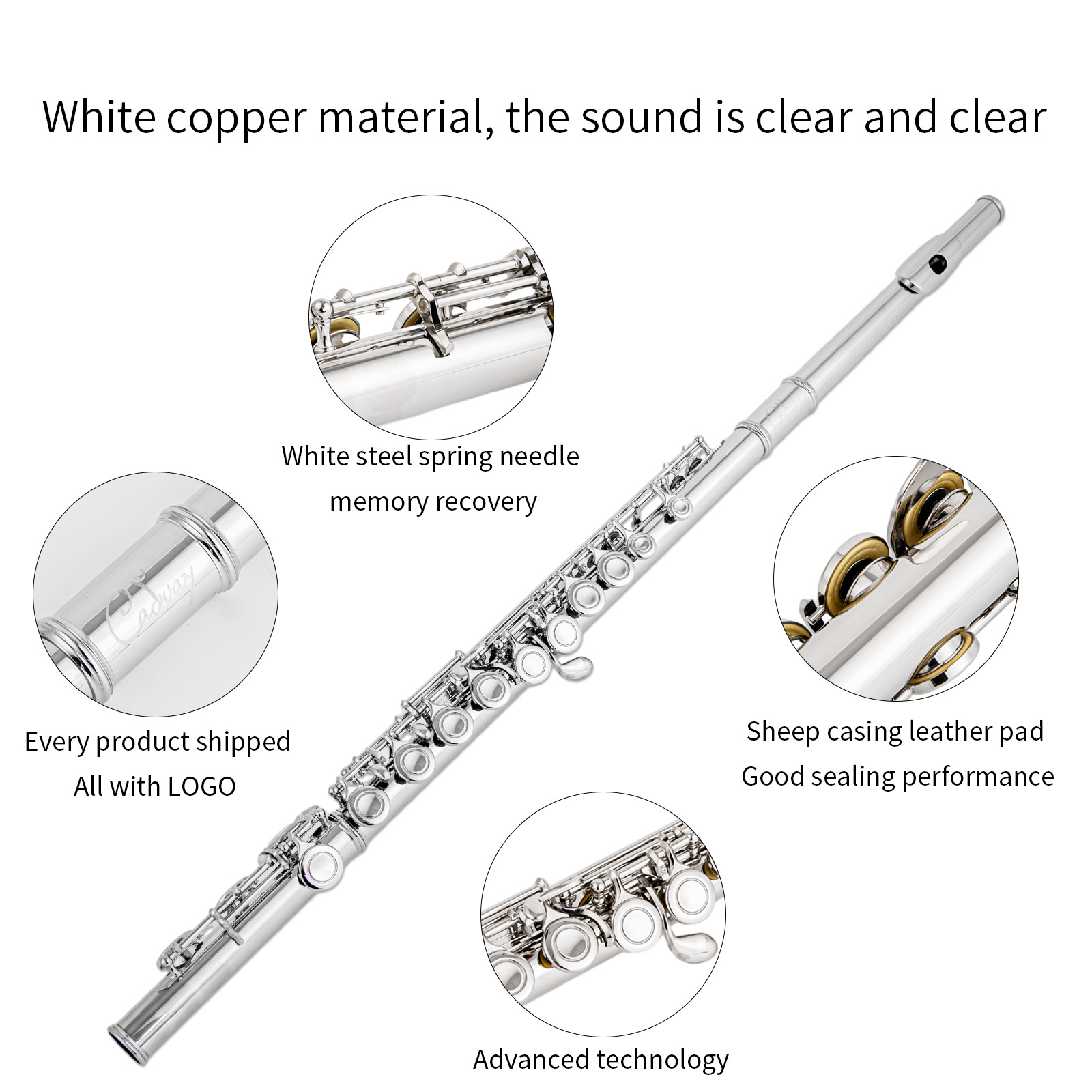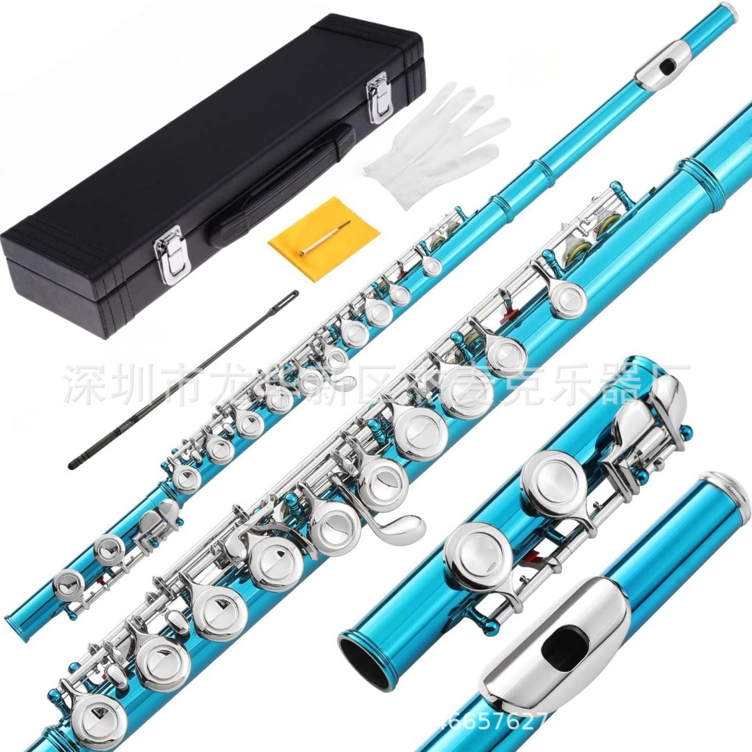 工厂直销多色可选16孔/键C调镀镍长笛 加E键镀银 彩色长笛 木盒