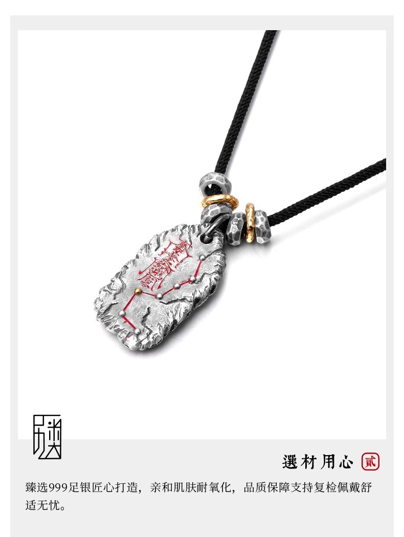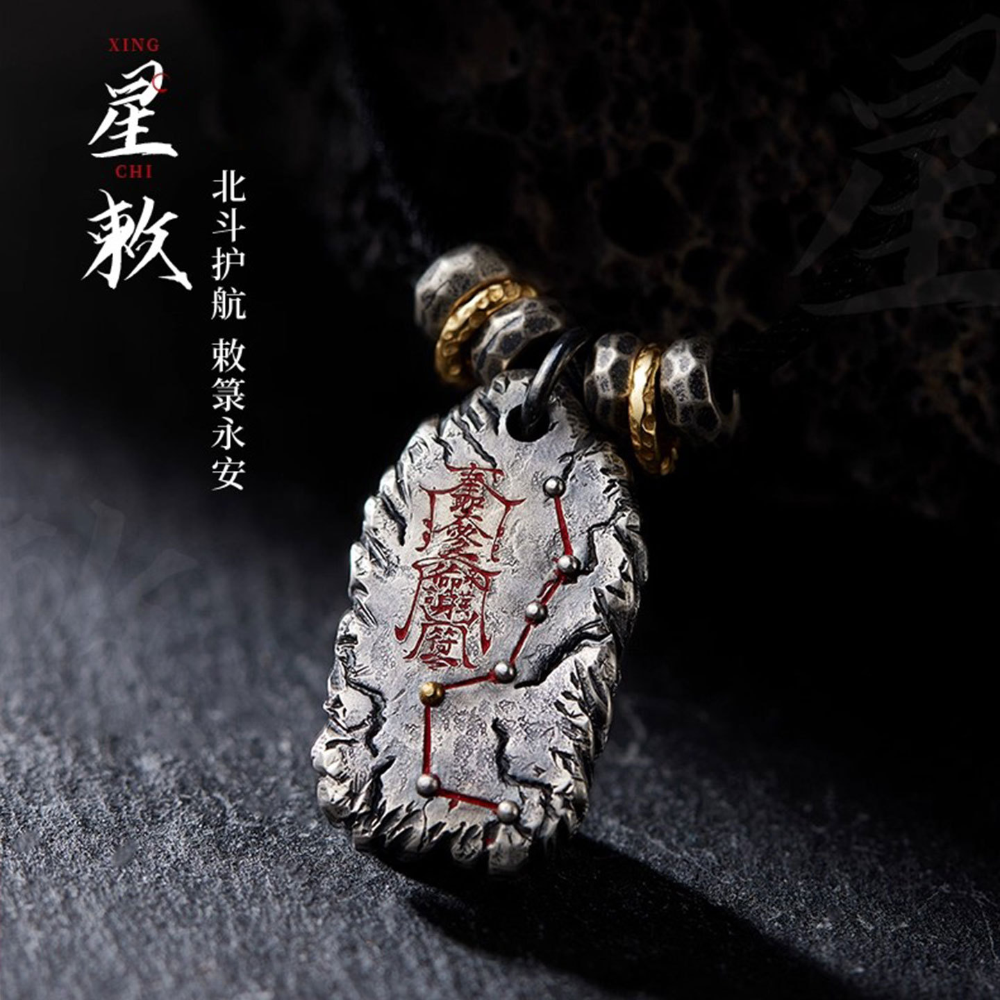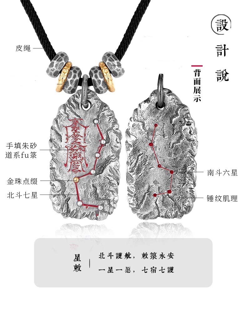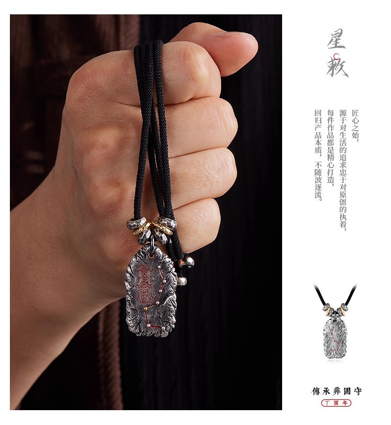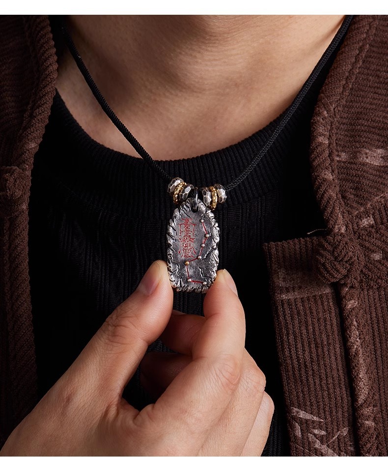 テリー エスニック風「道教のお守り・北斗七星」ペンダント メンズ タイシルバー 道教系 若者 レトロ辰砂ネックレス