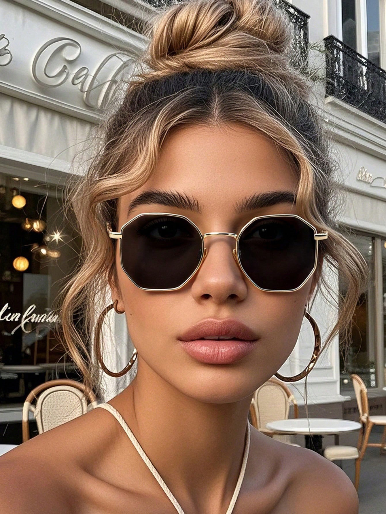 ヨーロッパとアメリカの女性用ポリゴンサングラス 2025 新しいファッションサングラス男性用ホリデー抗 UV サングラス