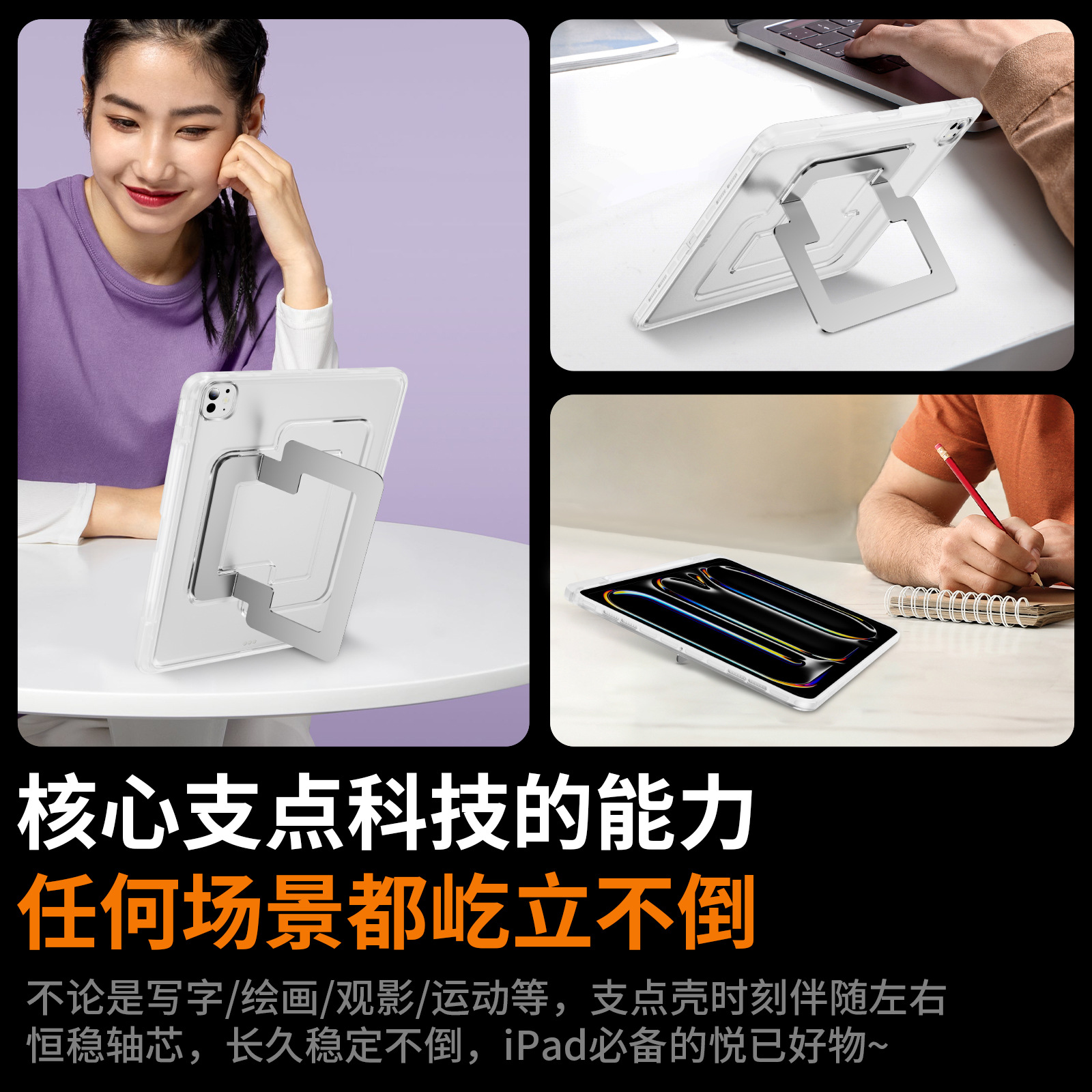 适用型号 角度灵活★支撑稳固★防摔防弯 iPad Pro 2024版(13英寸),角度灵活★支撑稳固★防摔防弯 iPad Pro 2024版(11英寸),角度灵活★支撑稳固★防摔防弯 iPad Pro 2022版(12.9英寸),角度灵活★支撑稳固★防摔防弯 iPad Pro 2021版(12.9英寸),角度灵活★支撑稳固★防摔防弯 iPad Pro 2021版(11英寸),角度灵活★支撑稳固★防摔防弯 iPad Pro 2020版(11英寸),角度灵活★支撑稳固★防摔防弯 iPad Pro 2019版(11英寸),角度灵活★支撑稳固★防摔防弯 iPad Air 2025版(13英寸),角度灵活★支撑稳固★防摔防弯 iPad Air 2024版(13英寸),角度灵活★支撑稳固★防摔防弯 iPad Air 7(10.9英寸),角度灵活★支撑稳固★防摔防弯 iPad Air 6(10.9英寸),角度灵活★支撑稳固★防摔防弯 iPad Air 5(10.9英寸),角度灵活★支撑稳固★防摔防弯 iPad Air 4(10.9英寸),角度灵活★支撑稳固★防摔防弯 iPad mini6/7,角度灵活★支撑稳固★防摔防弯iPad 10/11