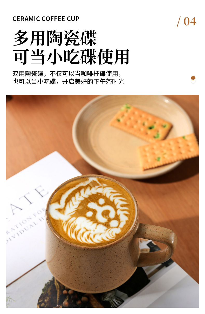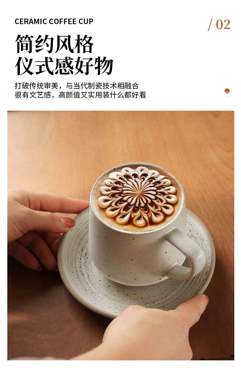 日式复古咖啡杯碟套装创意粗陶拉花杯子家用拿铁杯马克杯轻奢ins