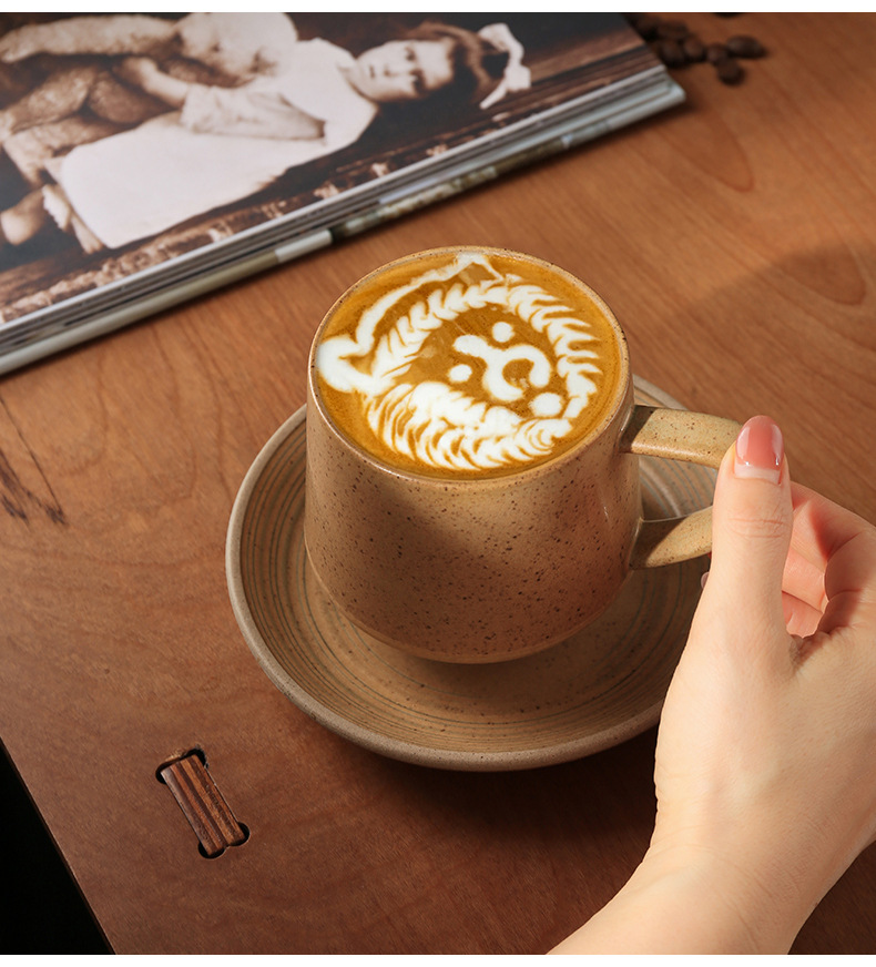 2022新型窯変コーヒーカップ皿セットレトロ日本式ラテカプチーノプルカップ