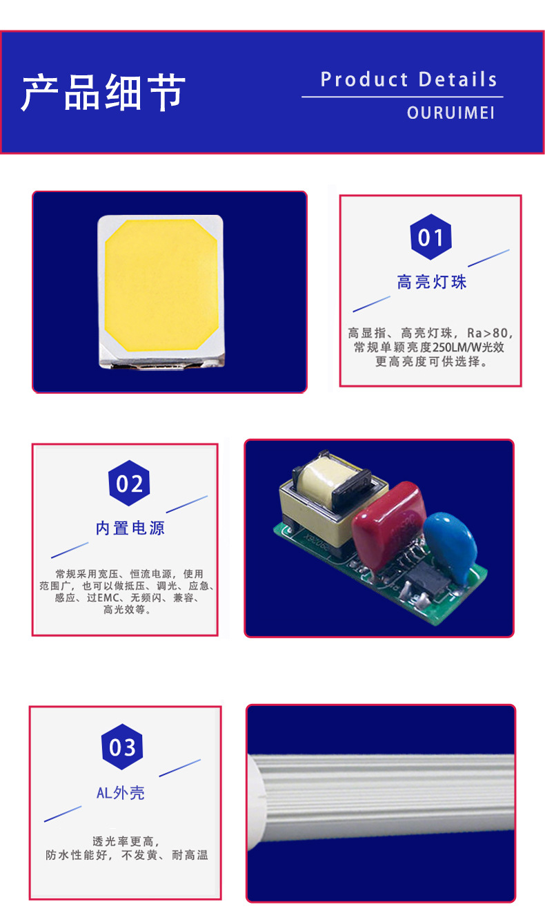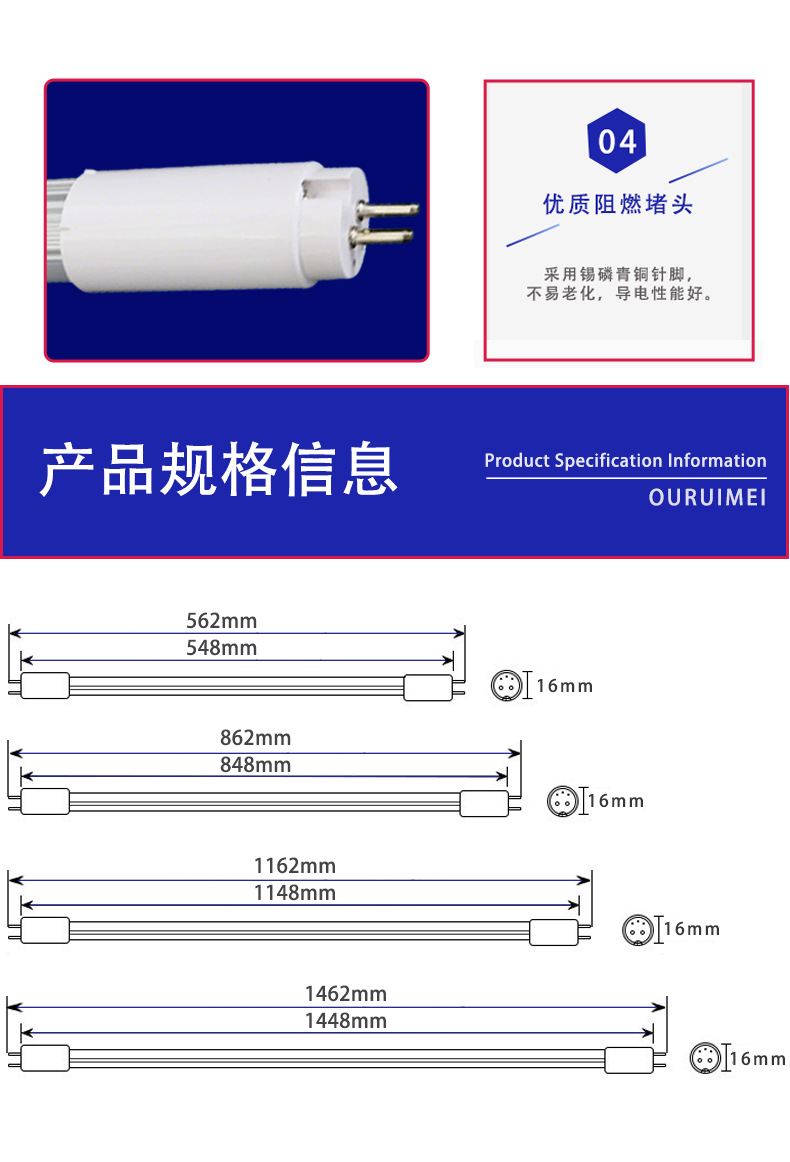 T5一体化日光灯管200lm/w节能改造高光效双端LEDt5分体灯管