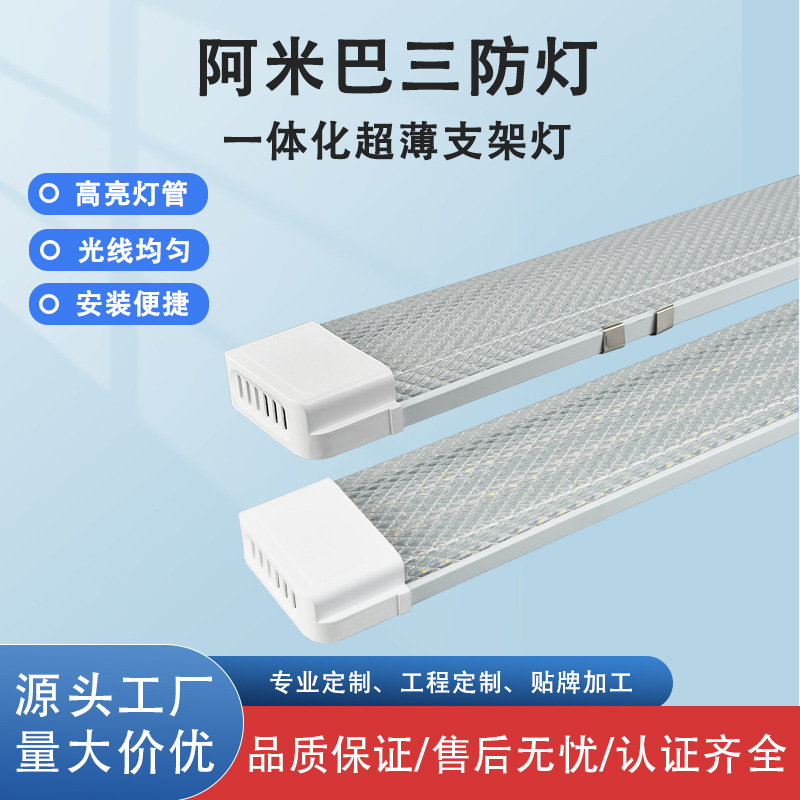 阿米巴超薄一体化支架LED灯管三防净化灯办公商用超亮日光灯管
